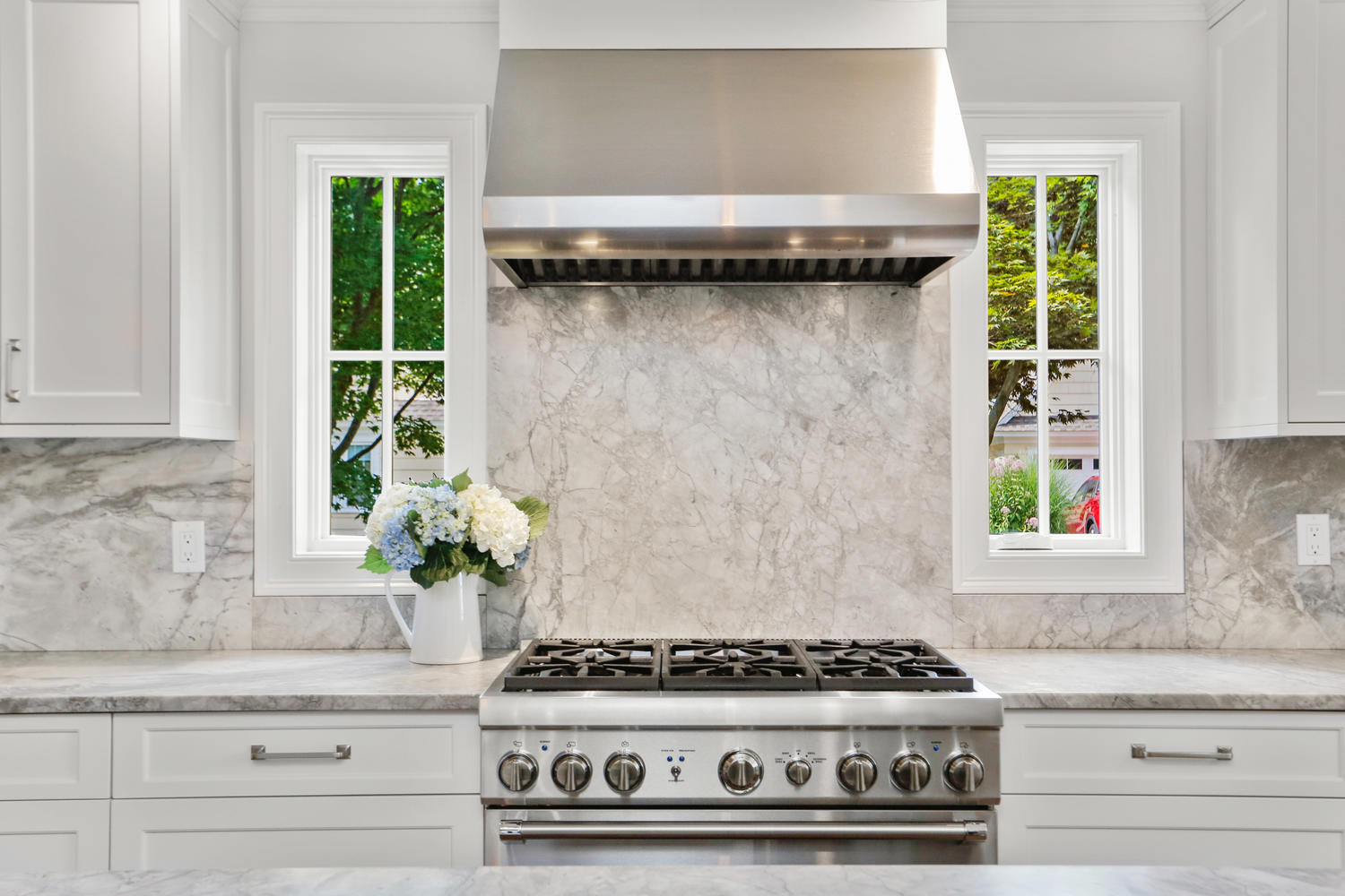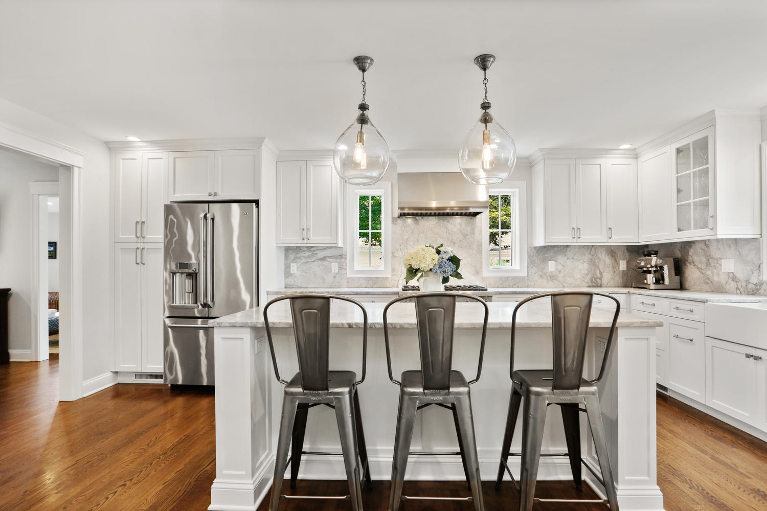 The living room is the perfect spot to cozy up next to the gas fireplace, the sunroom is calling your name to relax with a cup of coffee, and the dining room is designed to host intimate dinner parties. Shimmering quartzite counters and backsplash, stainless steel appliances, custom white cabinetry, a farmhouse sink, 7 foot center island, built-in wine fridge, and glass cabinets merge to create a kitchen worthy of gracing the pages of a magazine. Steps away you will find a mudroom with a built-in bench and cubbies, the stunning dining room, a powder room, and access to the terrace.