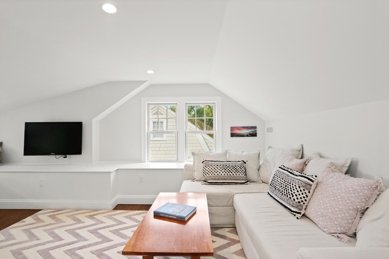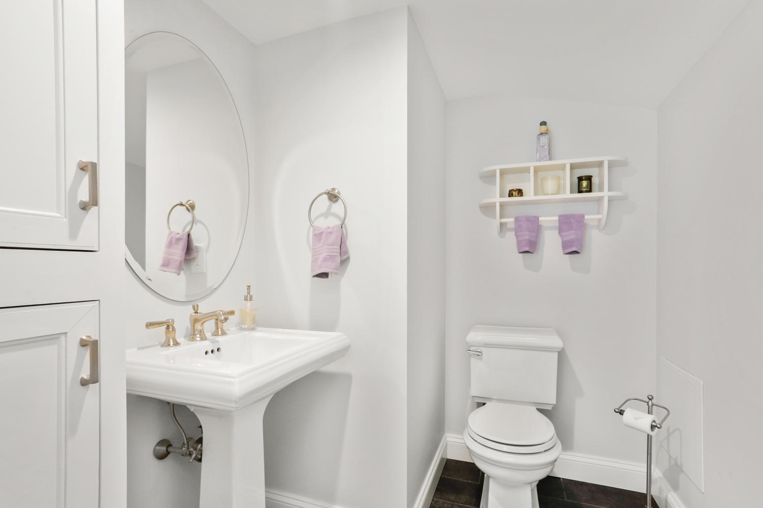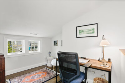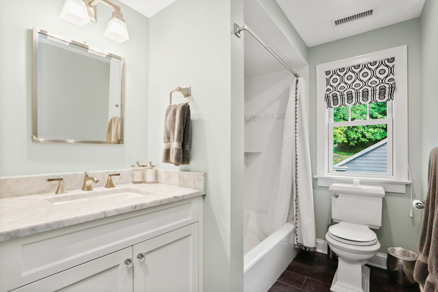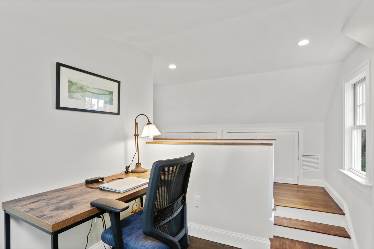 Upstairs holds three bedrooms and two full bathrooms, including the luxurious master suite. A walk-in closet, shoe closet, and full bathroom dressed in marble counters and tile add the perfect touch of glam. The additional bedrooms on this level are serviced by the spacious full bathroom, which also houses the laundry. The desirable features don’t end there… take a walk up to the finished third level, featuring a bedroom, half bathroom, home office nook, and tons of storage space. The bedroom has a wrap-around bench and proves to be a multi-functional space should you want a guest room, playroom, media room or gym.