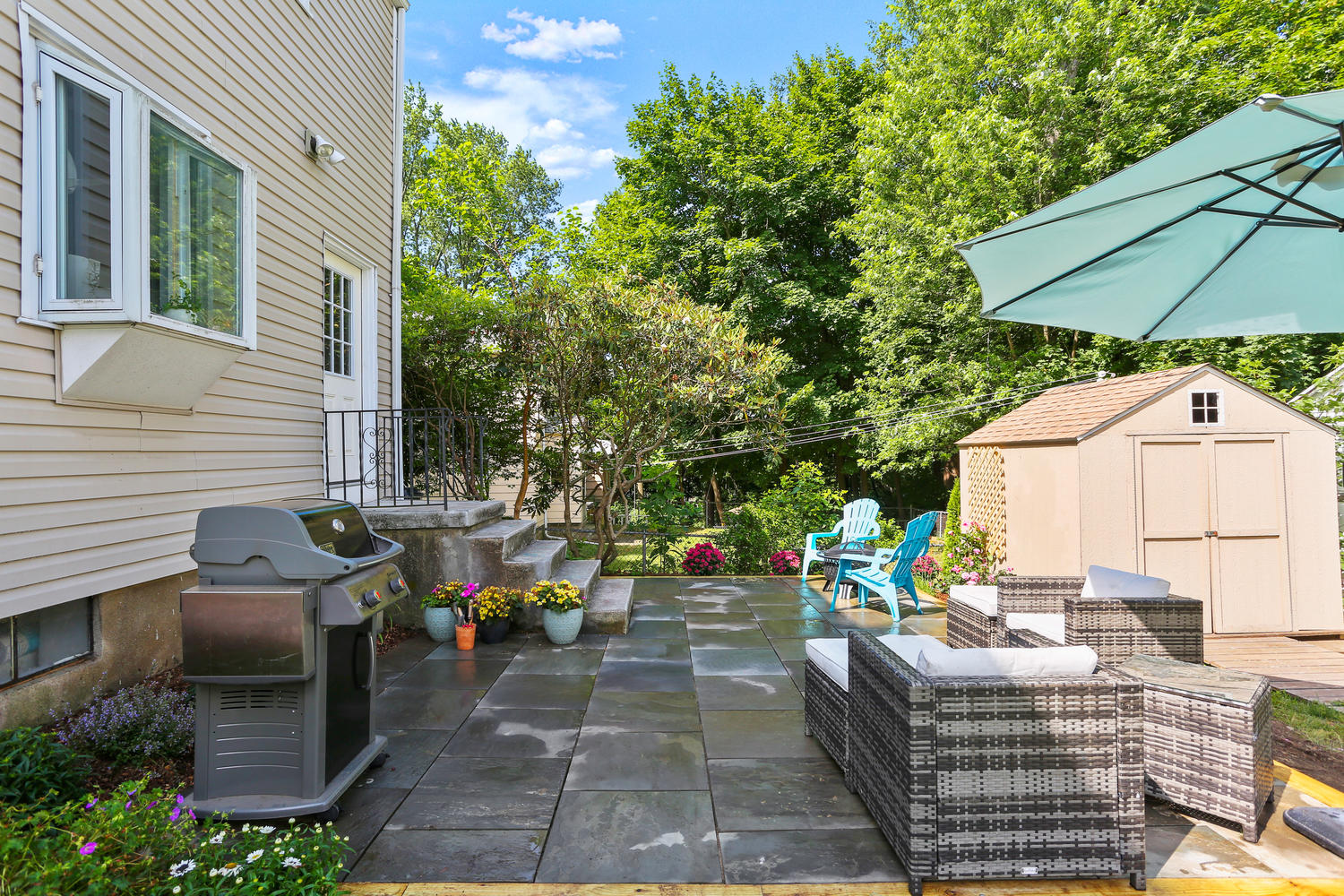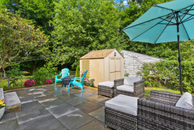 Upstairs you’ll find three spacious bedrooms, including the master bedroom which has dual closets and access to the walk-up attic. The full bathroom on this floor will surprise and delight you – very spacious with a tile floor, new vanity, window overlooking the backyard, and a bathtub. The impressive, flat, fenced-in yard is perfect for playing, relaxing, gardening, and entertaining. The new stone patio in the backyard is calling your name for BBQs, summer cocktails, and al fresco dining, and the great lawn is calling your name for lawn games, chasing the dog around, and catching fireflies. Hydrangeas, perennials and large trees surround the property, creating a private, shaded, tranquil spot you’ll love calling home.