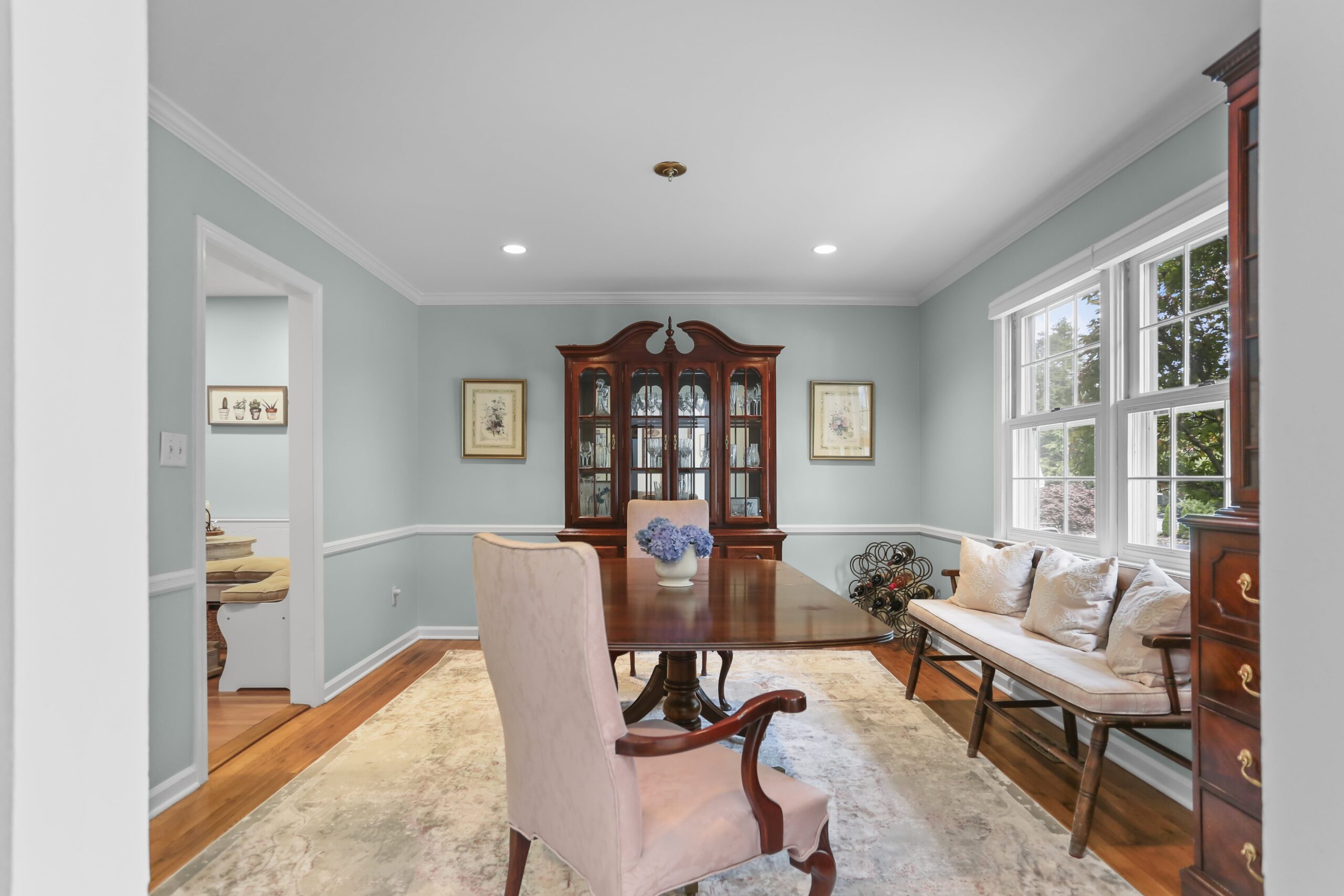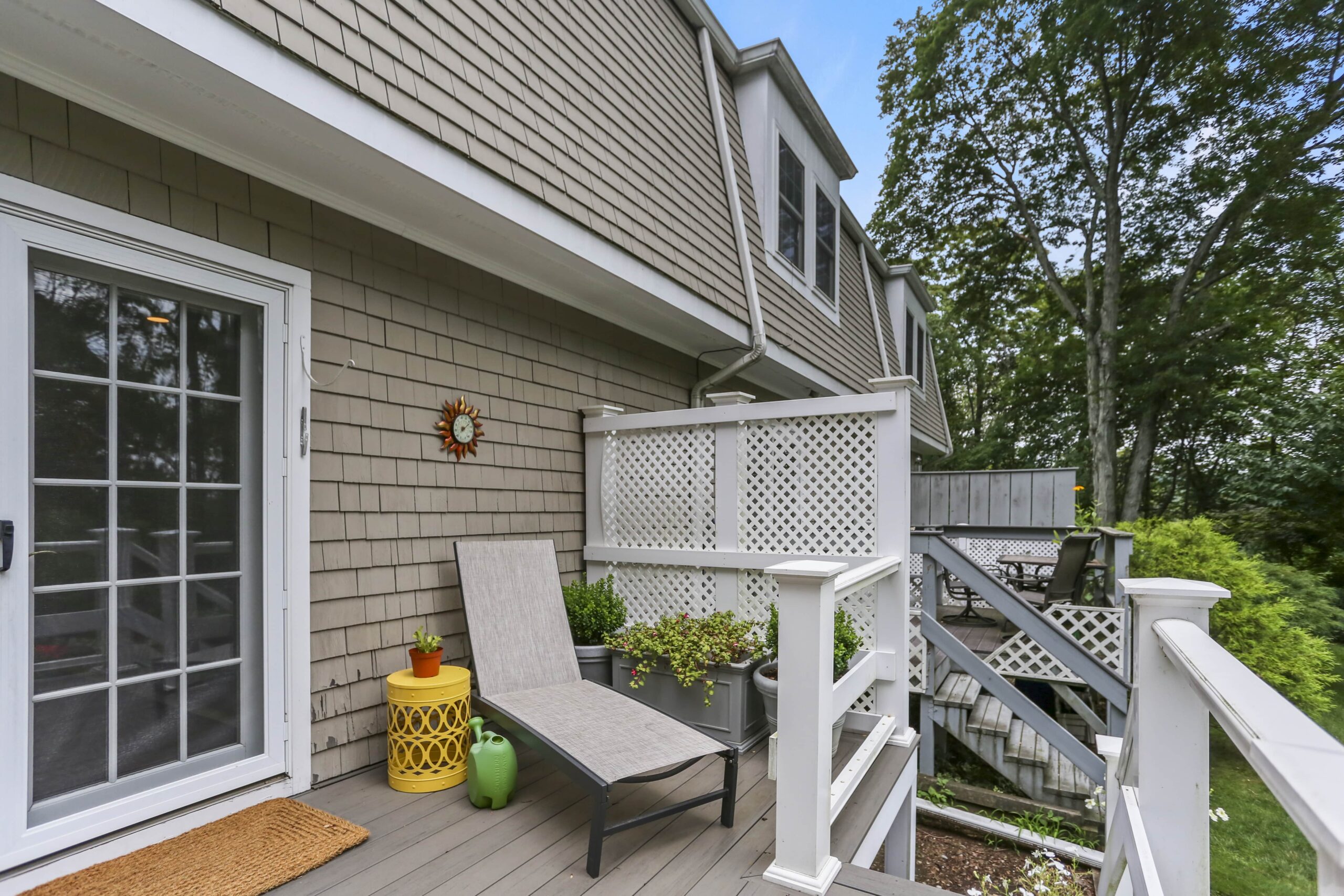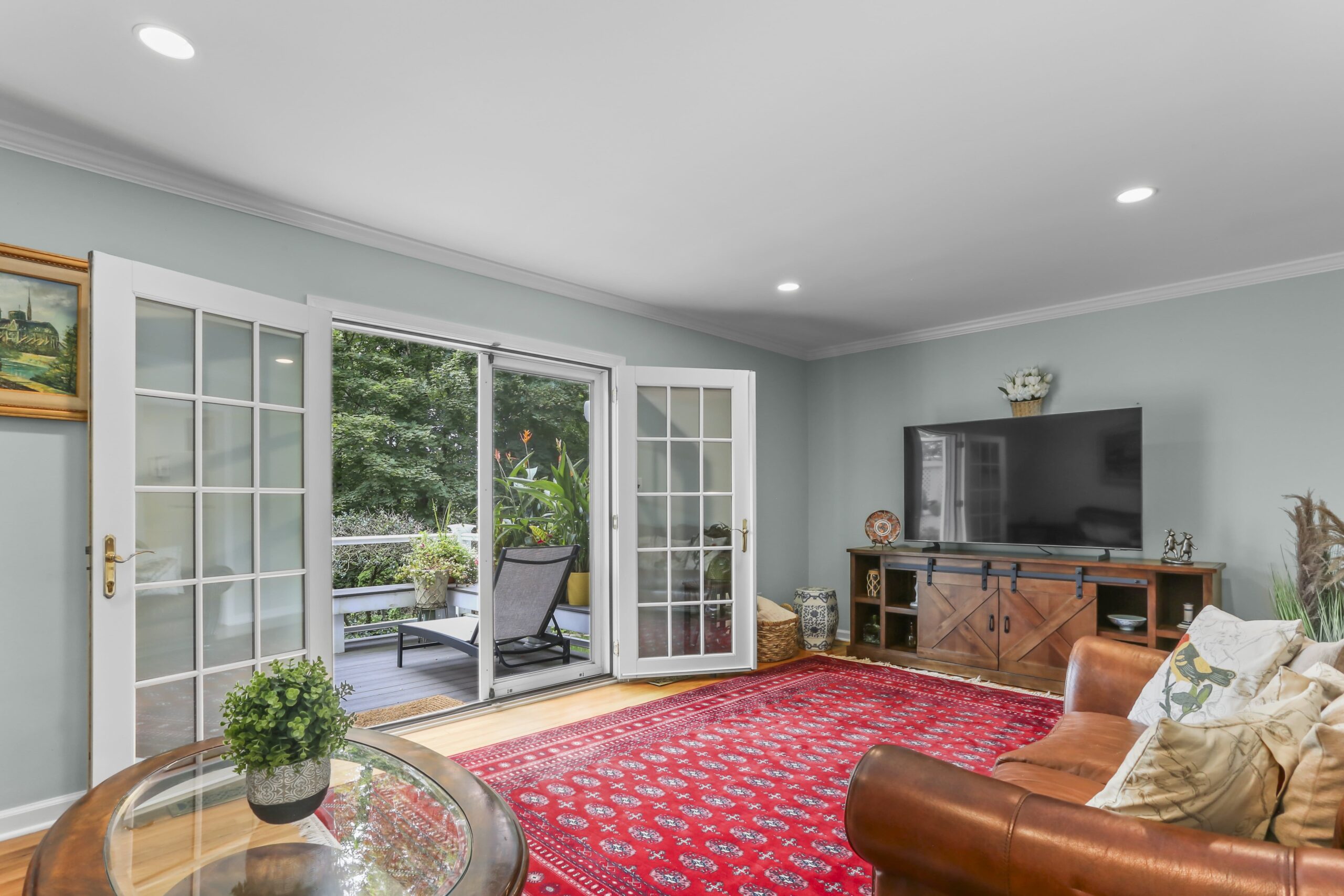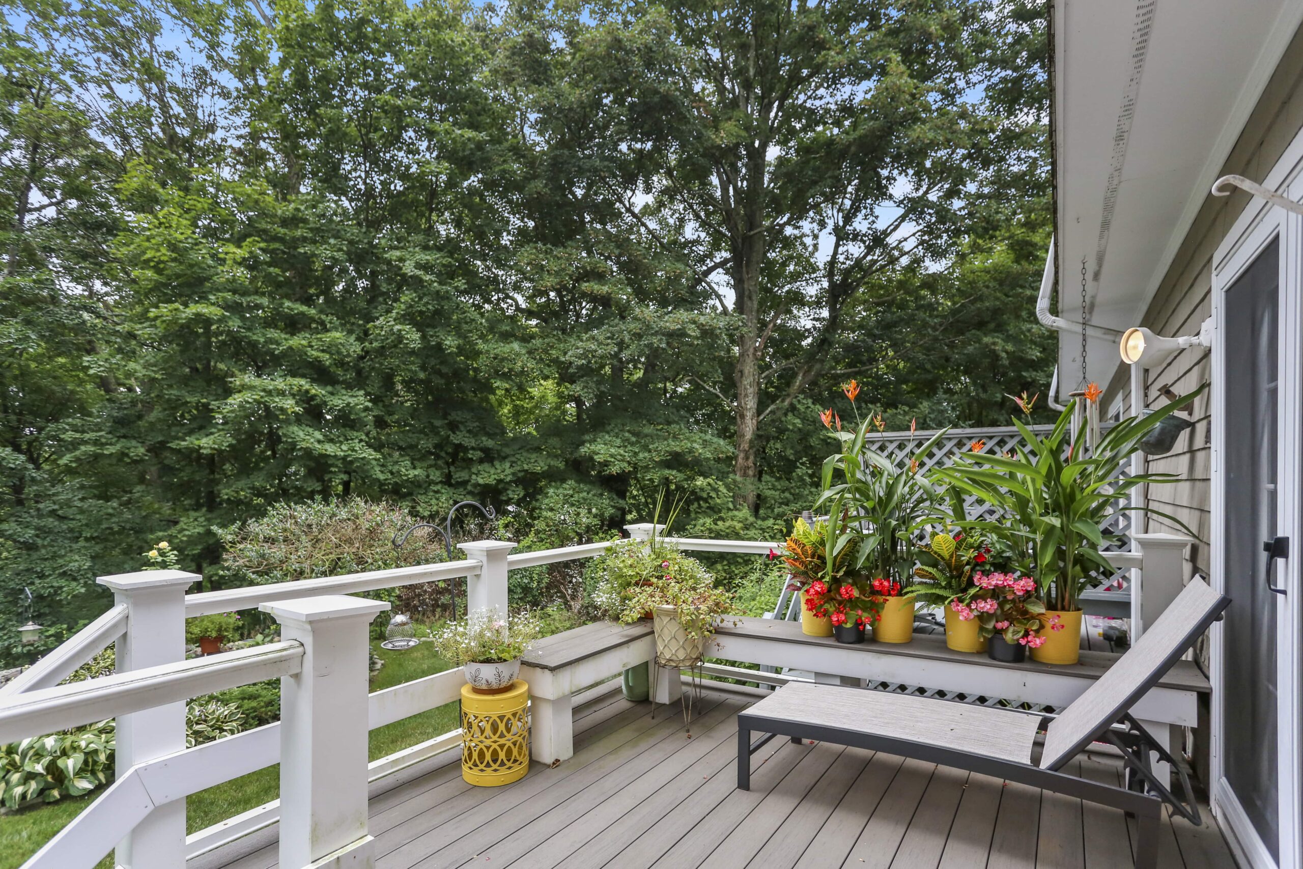 Welcome to Essex Ridge, where easy, townhouse living meets the charm of New Canaan. This stunning condo offers a perfect blend of comfort, convenience, and natural beauty! The foyer leads to the dining room, a perfect setting for memorable dinners or gatherings with friends. The kitchen features a cozy breakfast nook and ample counter space to prepare delicious meals. In the spacious living room, French doors lead to the private deck which has captivating view of beautiful gardens, allowing you to unwind and enjoy indoor/outdoor entertaining while enjoying the serenity of nature. A half bathroom finishes off the first floor.