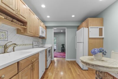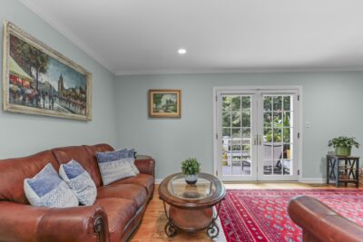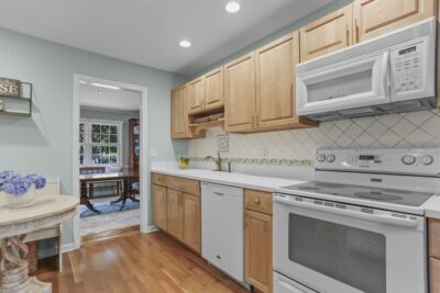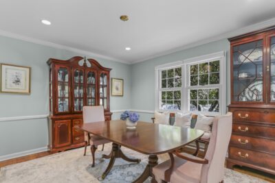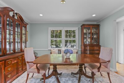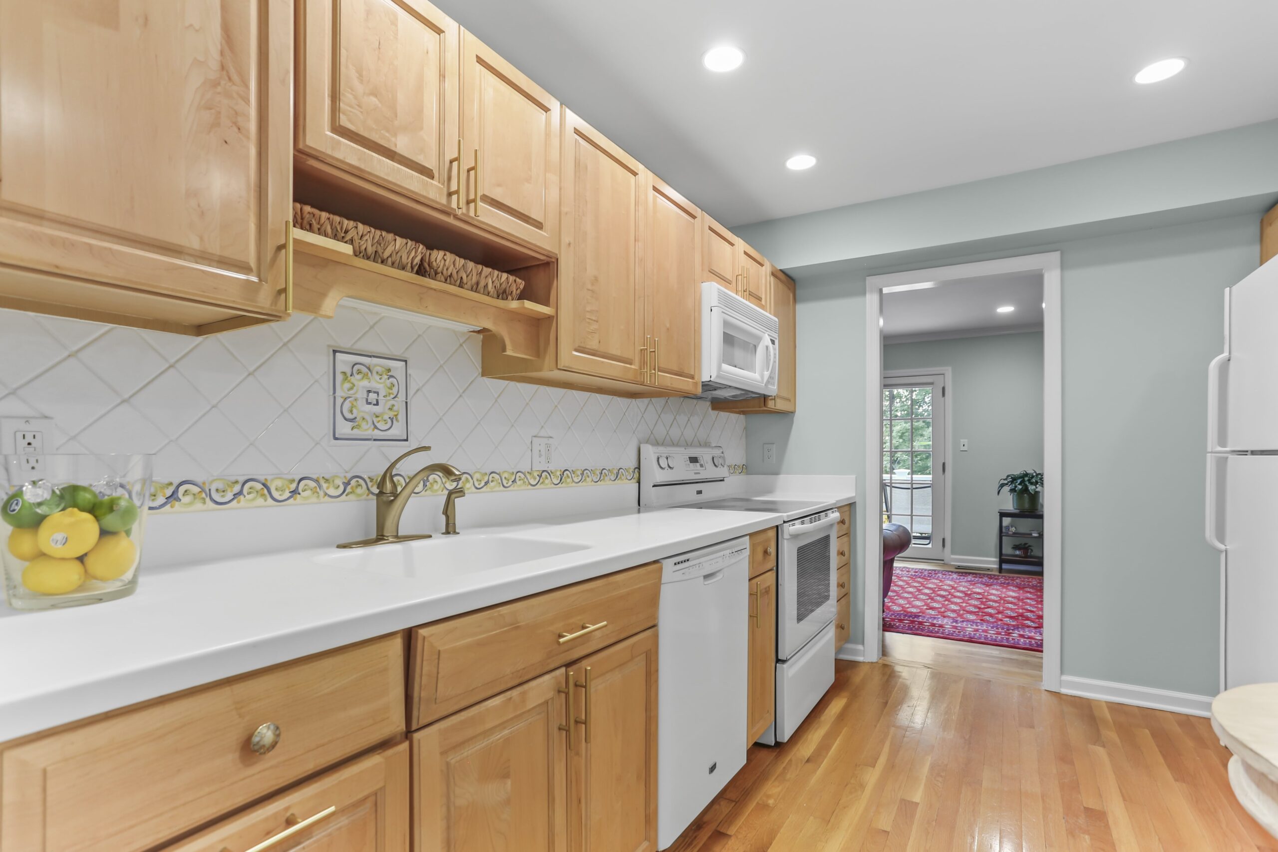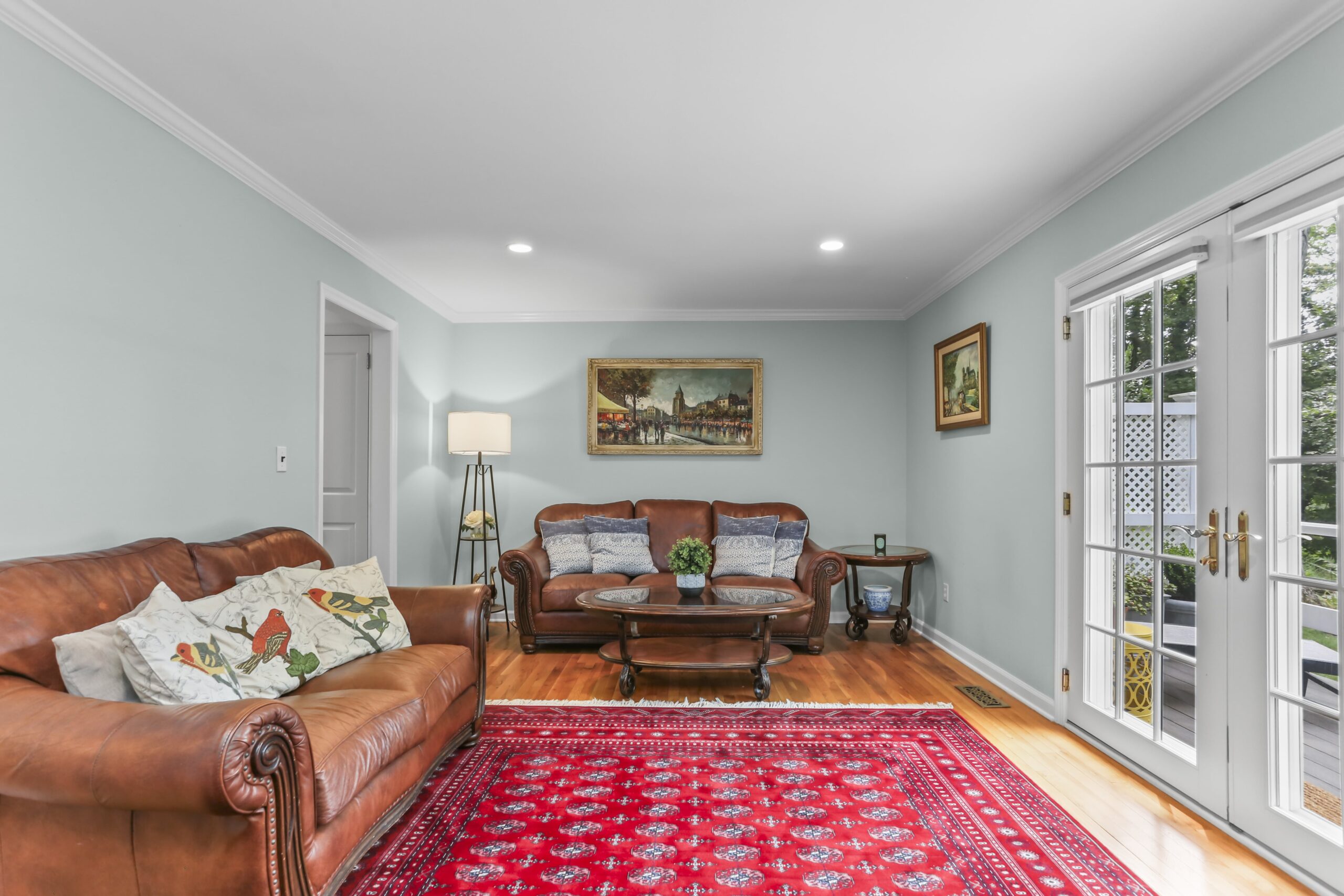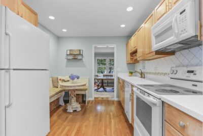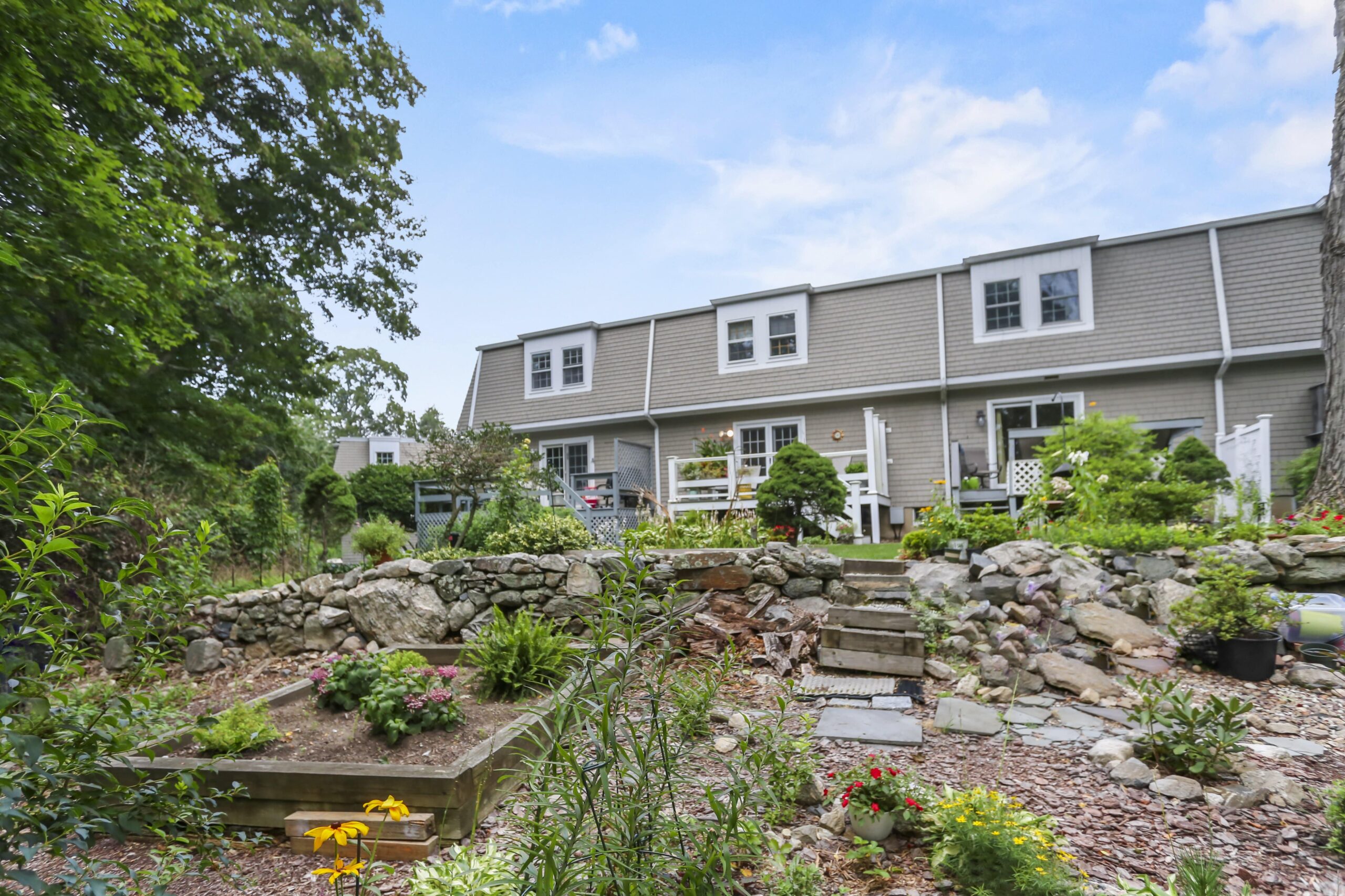 Welcome to Essex Ridge, where easy, townhouse living meets the charm of New Canaan. This stunning condo offers a perfect blend of comfort, convenience, and natural beauty! The foyer leads to the dining room, a perfect setting for memorable dinners or gatherings with friends. The kitchen features a cozy breakfast nook and ample counter space to prepare delicious meals. In the spacious living room, French doors lead to the private deck which has captivating view of beautiful gardens, allowing you to unwind and enjoy indoor/outdoor entertaining while enjoying the serenity of nature. A half bathroom finishes off the first floor.