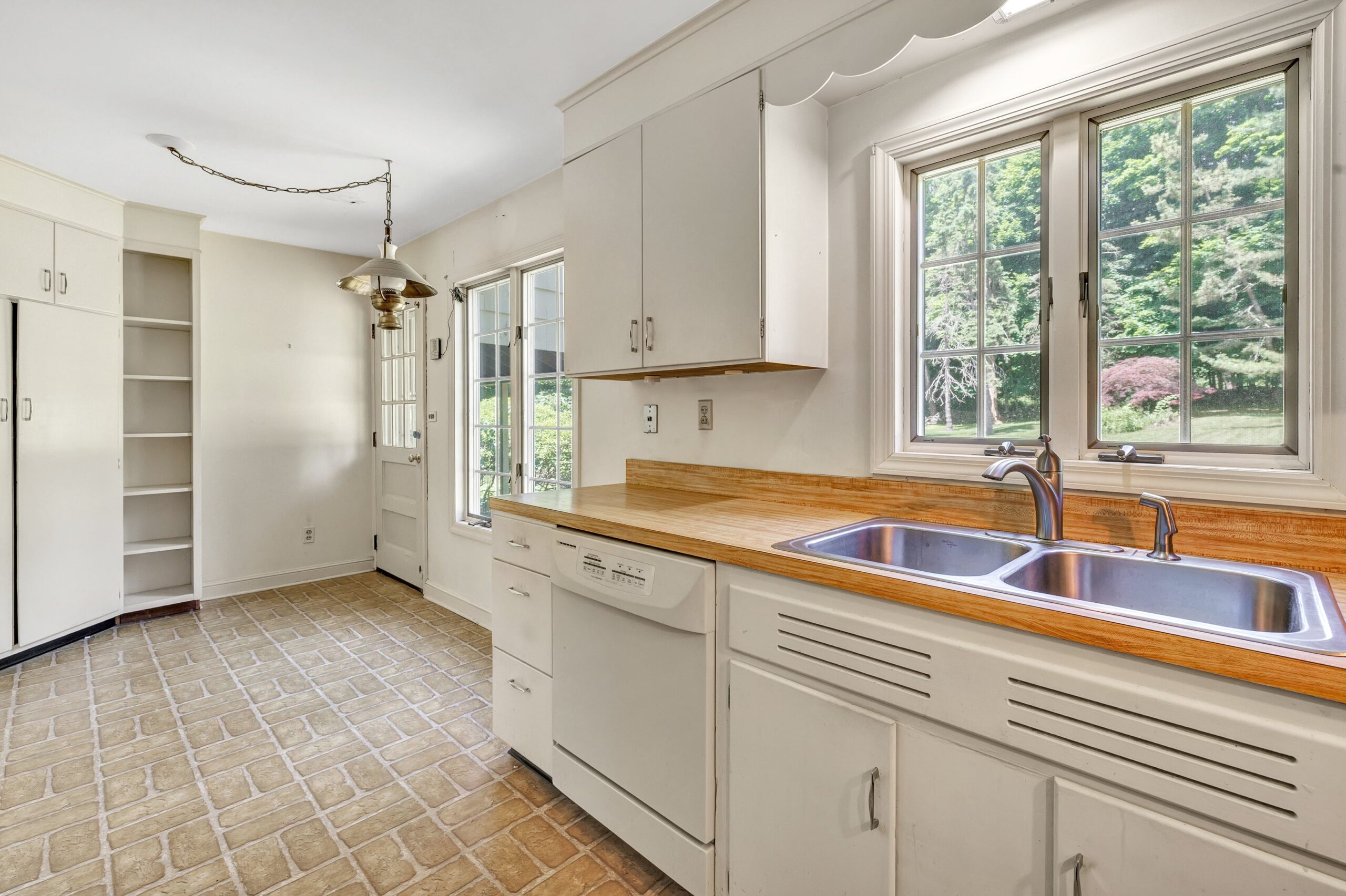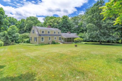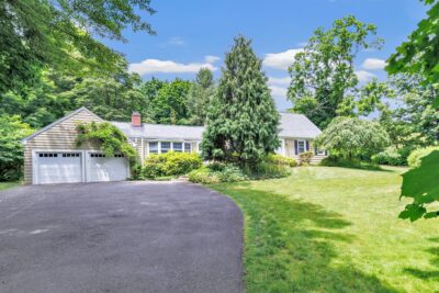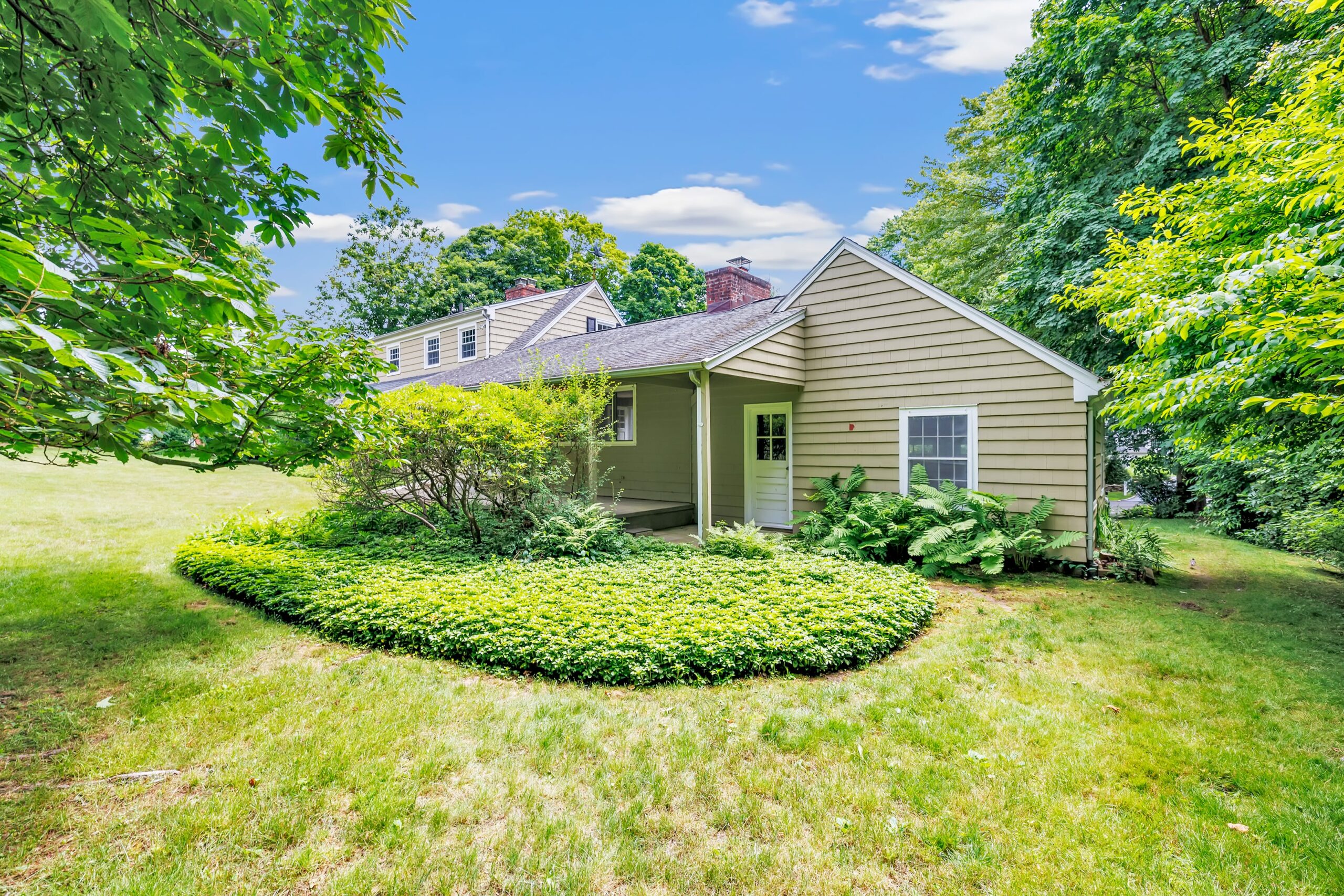 Tucked behind stone walls and mature trees sits a charming Cape in Fairfield's lower Greenfield Hill neighborhood. Bring your imagination and ideas for this 1,900 square foot home on a picturesque street! The stone walkway, black window shutters, and wisteria draping the garage are welcoming sights.