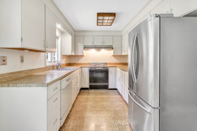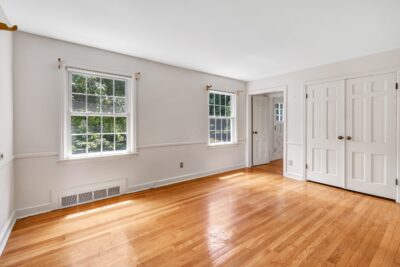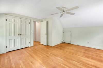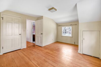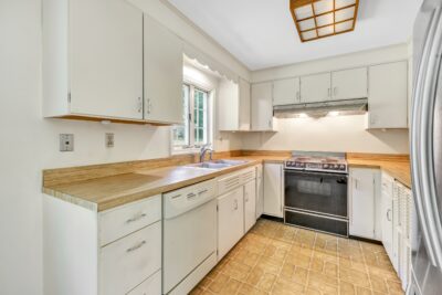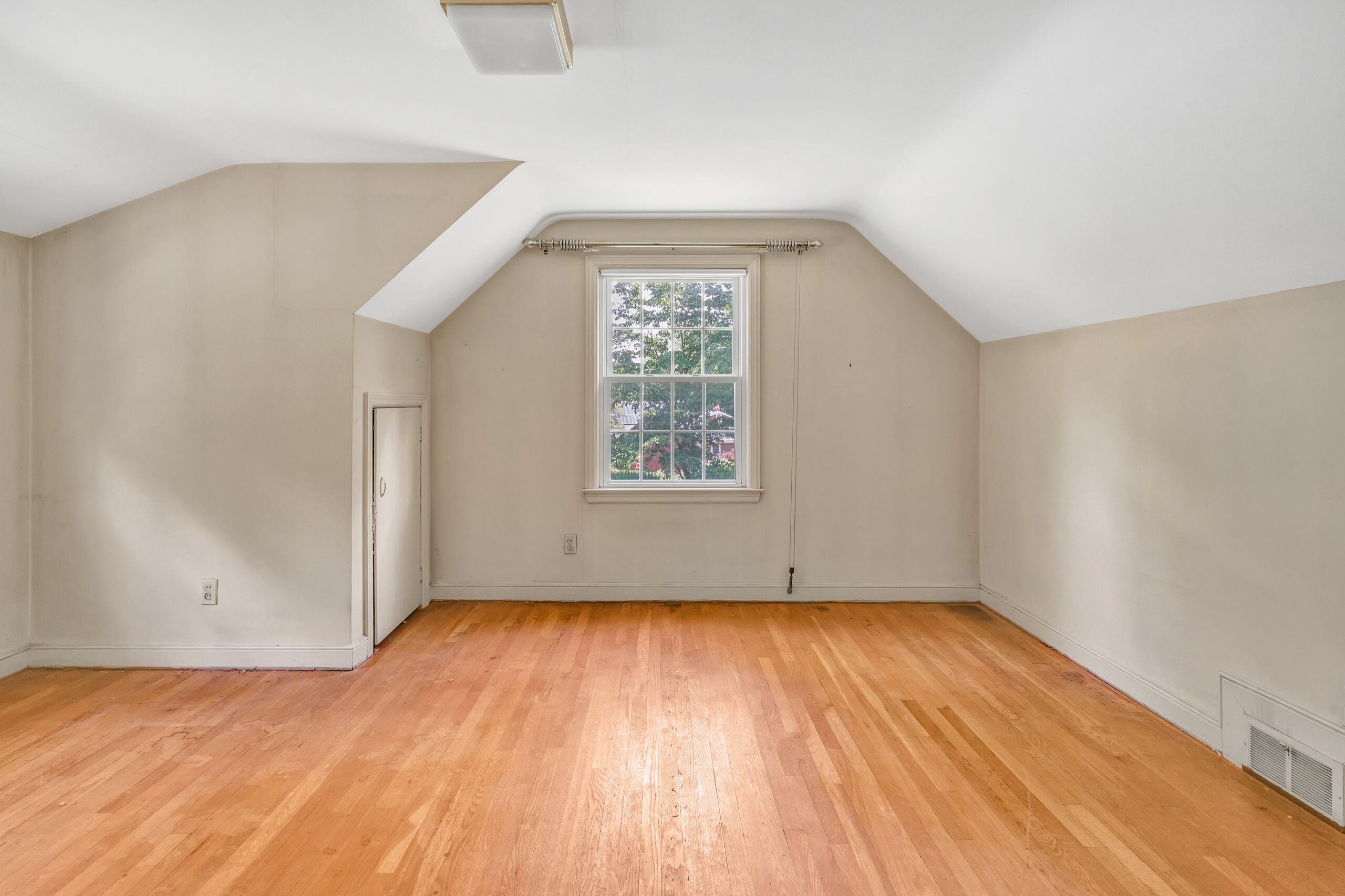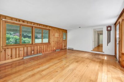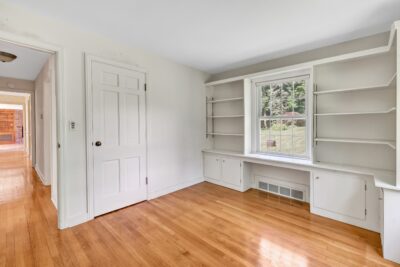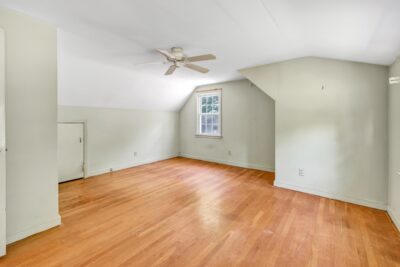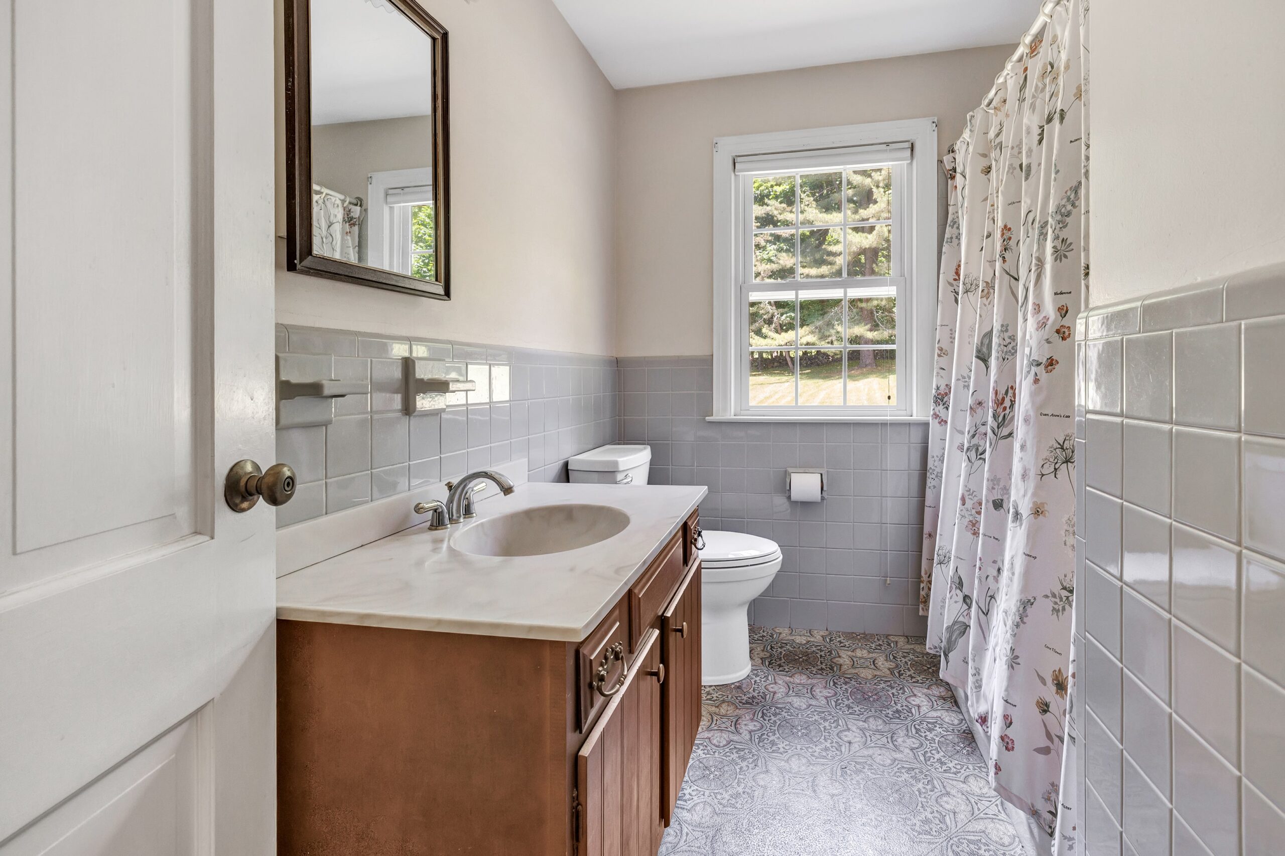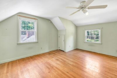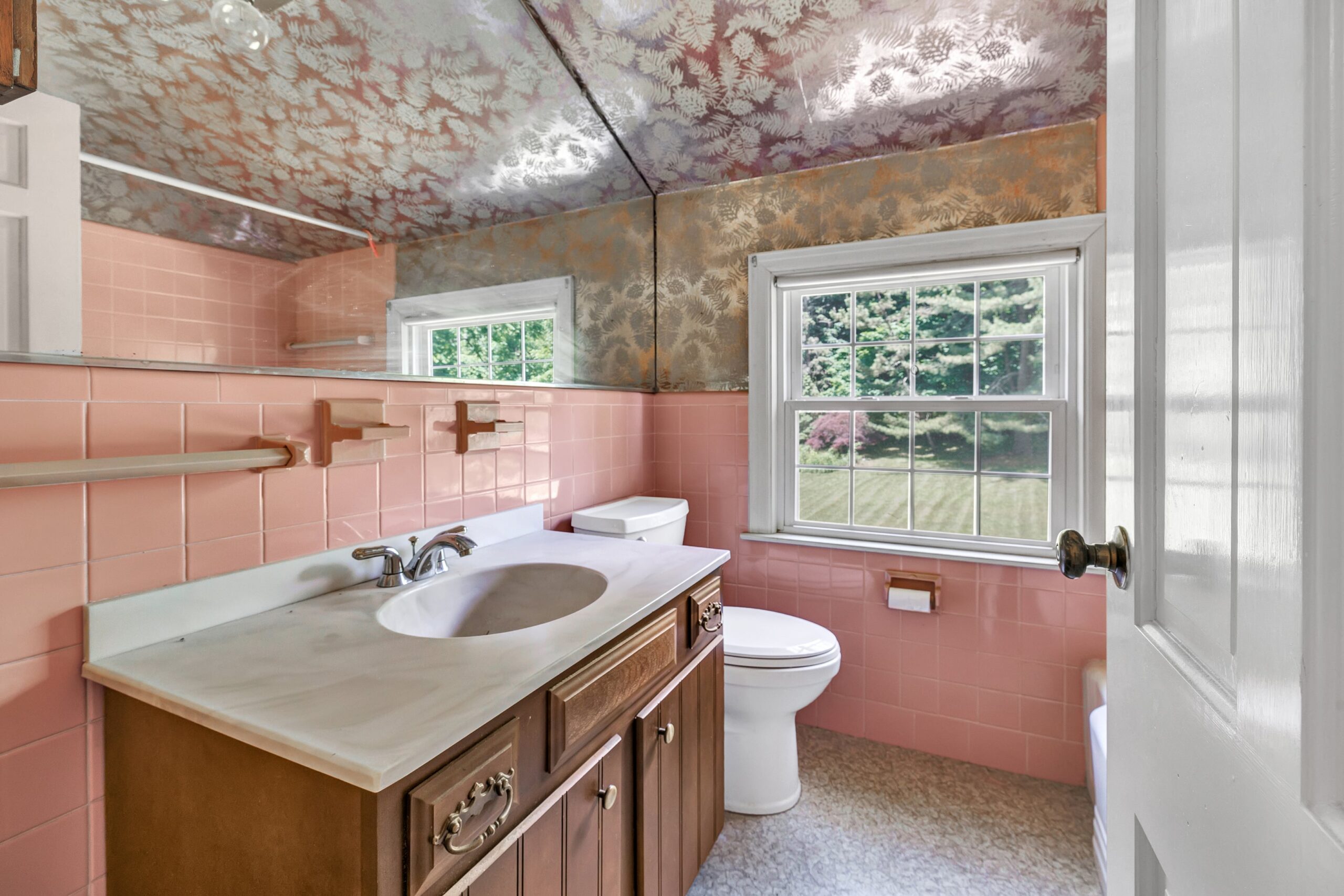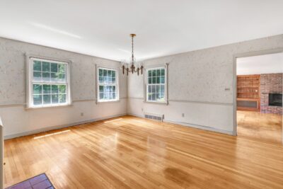 Inside, the front foyer is flanked by the formal dining room and living room/bedroom. The dining room features a fireplace, built-ins, and a chair rail and is the perfect size to host all kinds of gatherings and holiday meals. Pass through the dining room to the kitchen which is awaiting your personal touch, with views and access to the patio and sprawling yard beyond. The oversized, sun-filled family room has wide plank floors, built-in bookshelves, a wood-burning brick fireplace, a bay window overlooking the front yard and Dutch door. Continuing to the other side of the house, two bedrooms and a full bathroom complete the main level. On the second floor, you'll find two bedrooms and a full bathroom with eye-catching wallpaper, plus a walk-in closet and additional storage in the eaves.