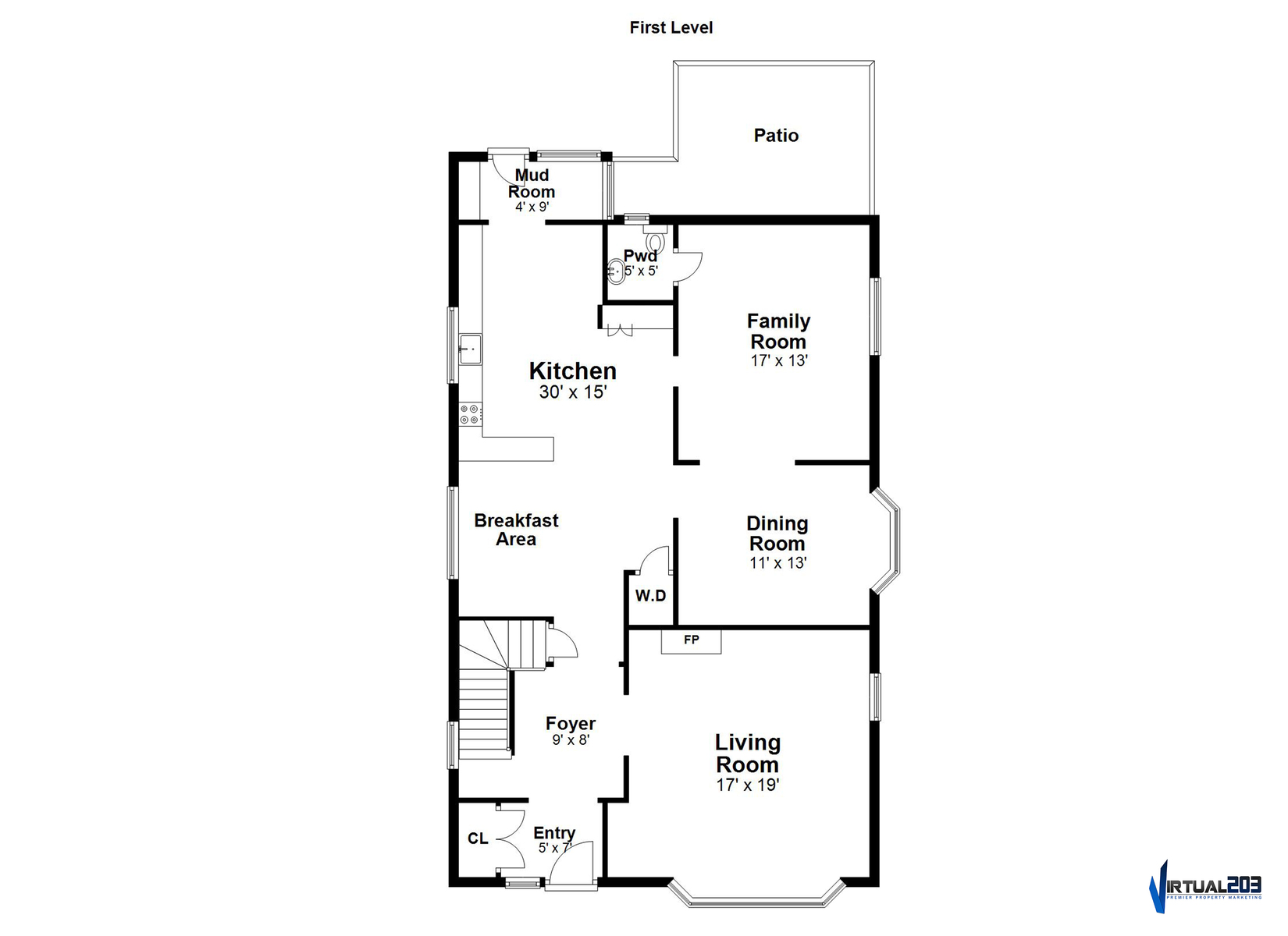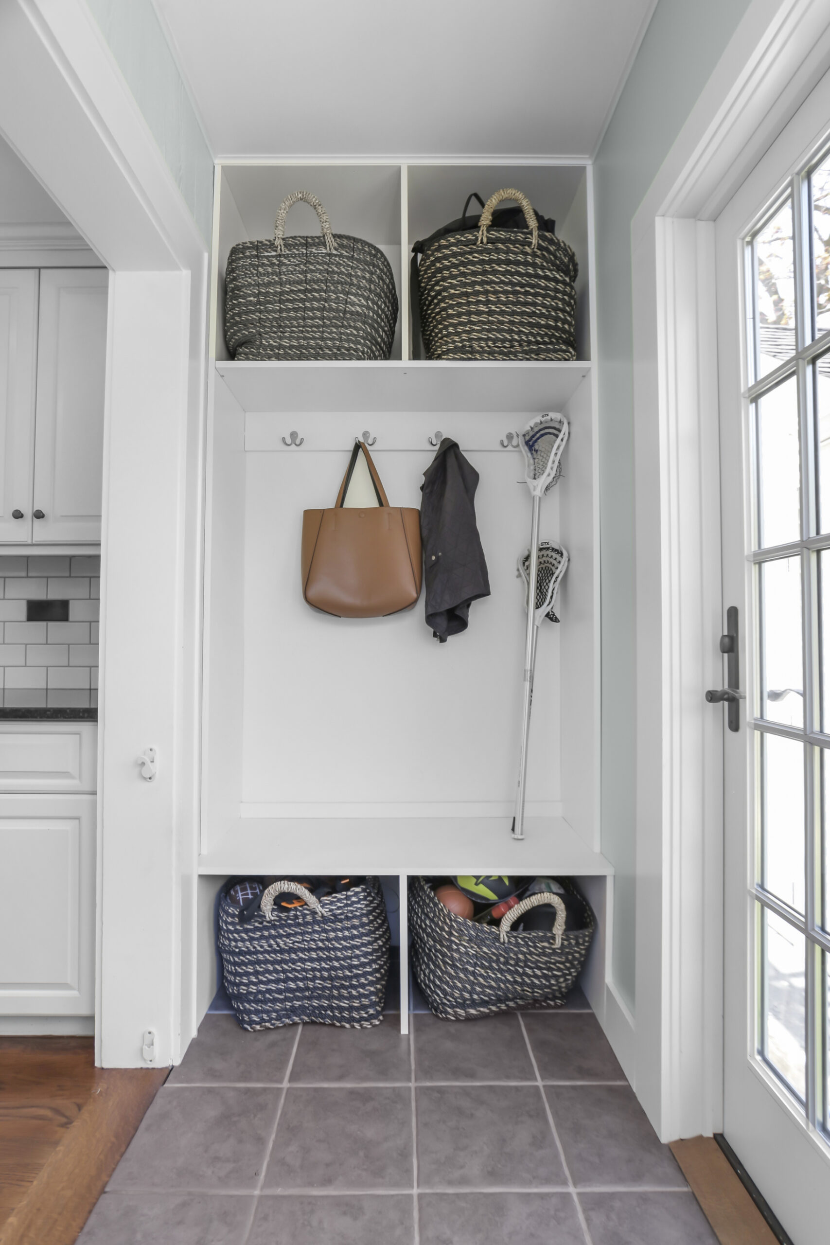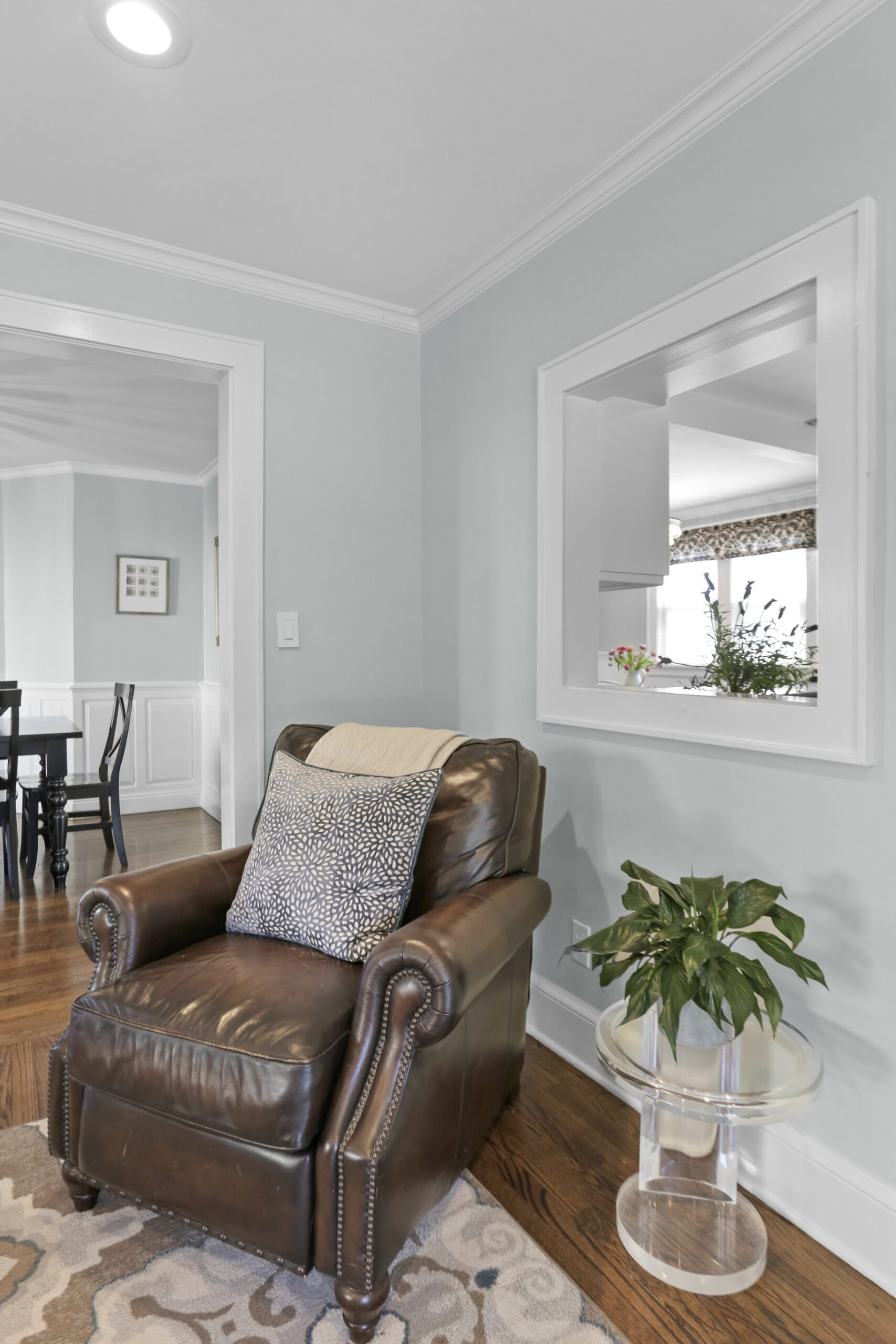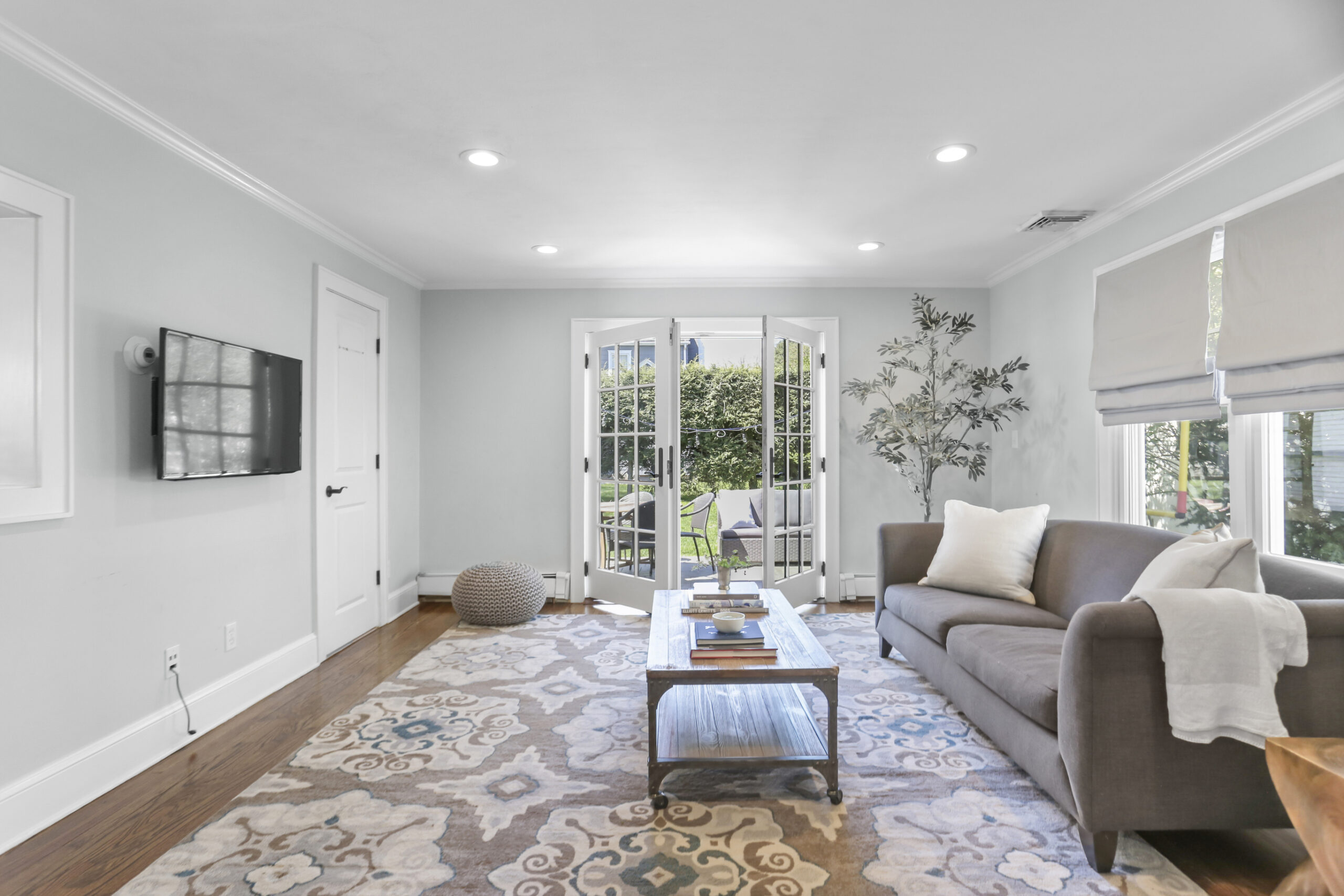 Inside, the foyer opens to an oversized living room complete with a fireplace and bay window, the perfect spot for movie night or relaxing with a good book. Just ahead, the kitchen is spacious and features a large breakfast nook. Stainless steel appliances, glass cabinets, black and white tile backsplash and wainscoting complete the kitchen. Don't miss the mudroom and a French door leading out to the backyard! Hosting dinner parties, entertaining friends and family for holiday gatherings or having quiet meals in has never been easier with the large dining room steps away, accented with moldings and a bay window. The family room is chic and cozy with French doors inviting you out to the patio and a charming window to peek into the kitchen. A half bathroom is tucked neatly in the corner.