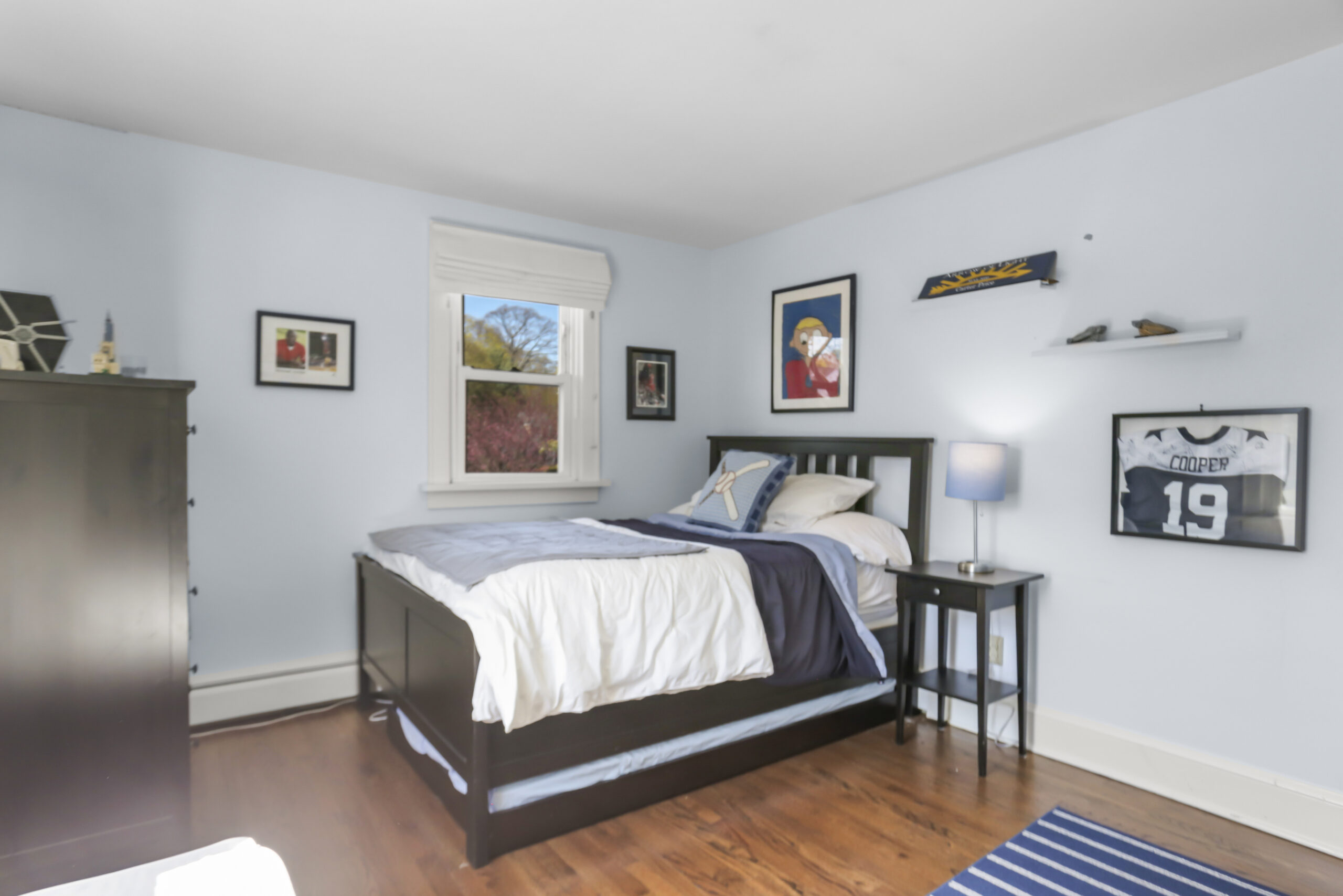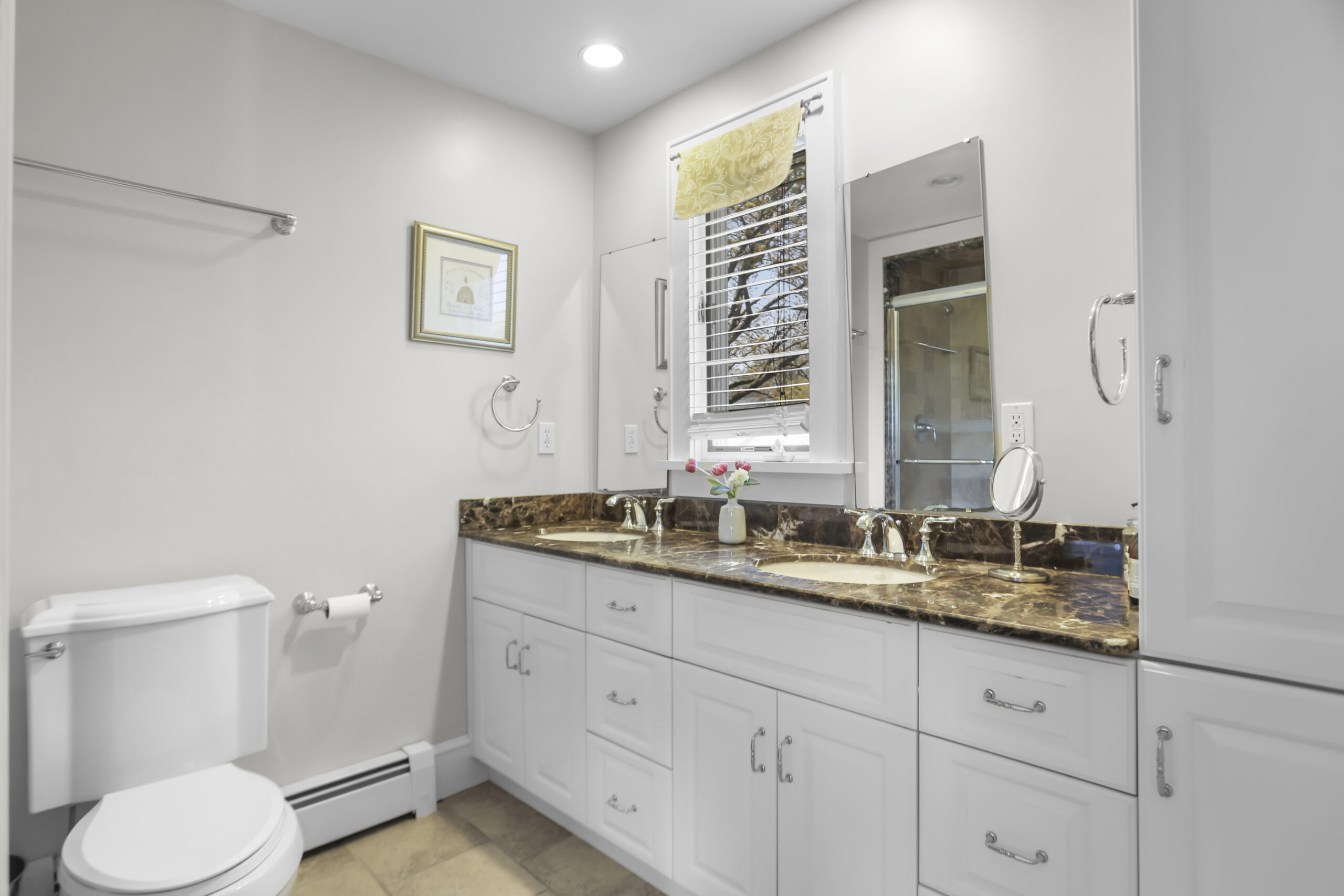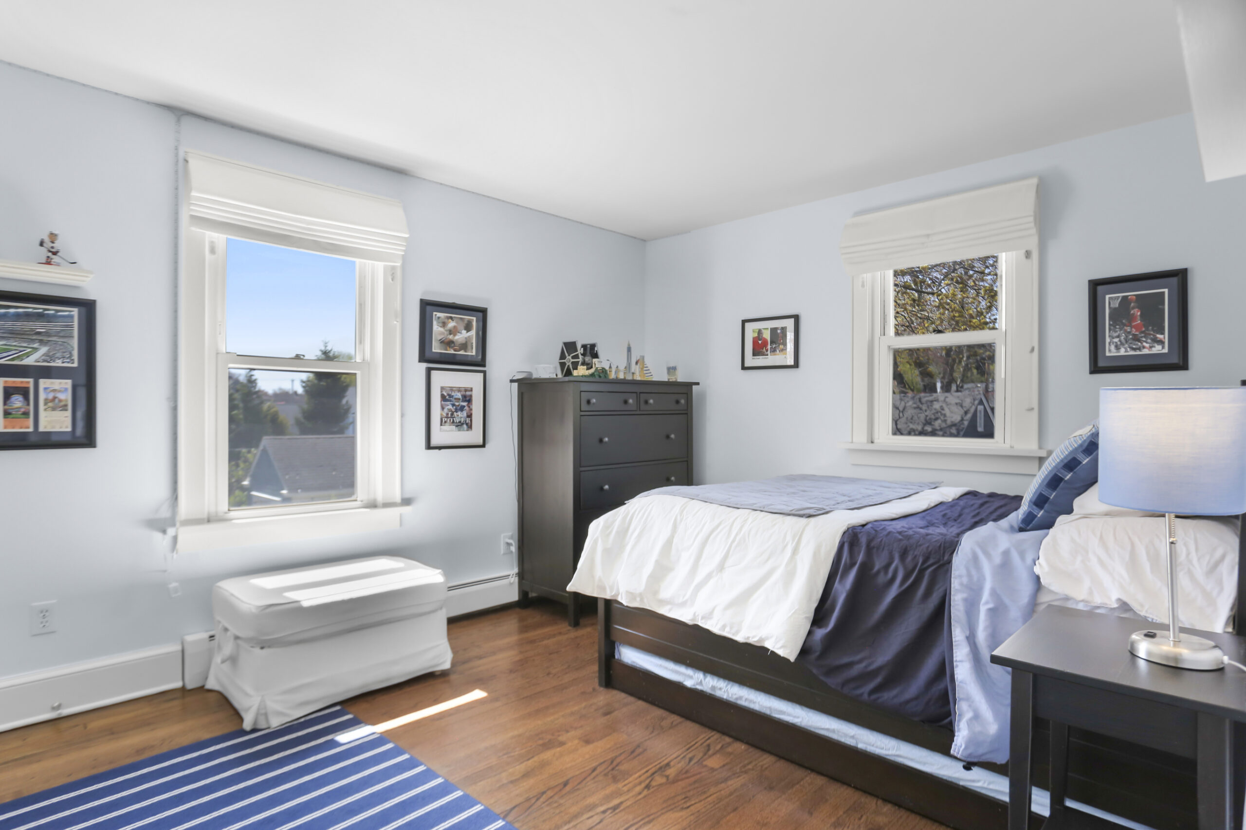 Upstairs, four generously-sized bedrooms await; three share the hallway bathroom. The master bedroom is a sight to behold, with a walk-in closet and luxurious master bathroom with a glass walk-in shower and dual sinks. We're not done yet... the finished lower level provides almost 500 square feet for a playroom, media room, gym or second family room.