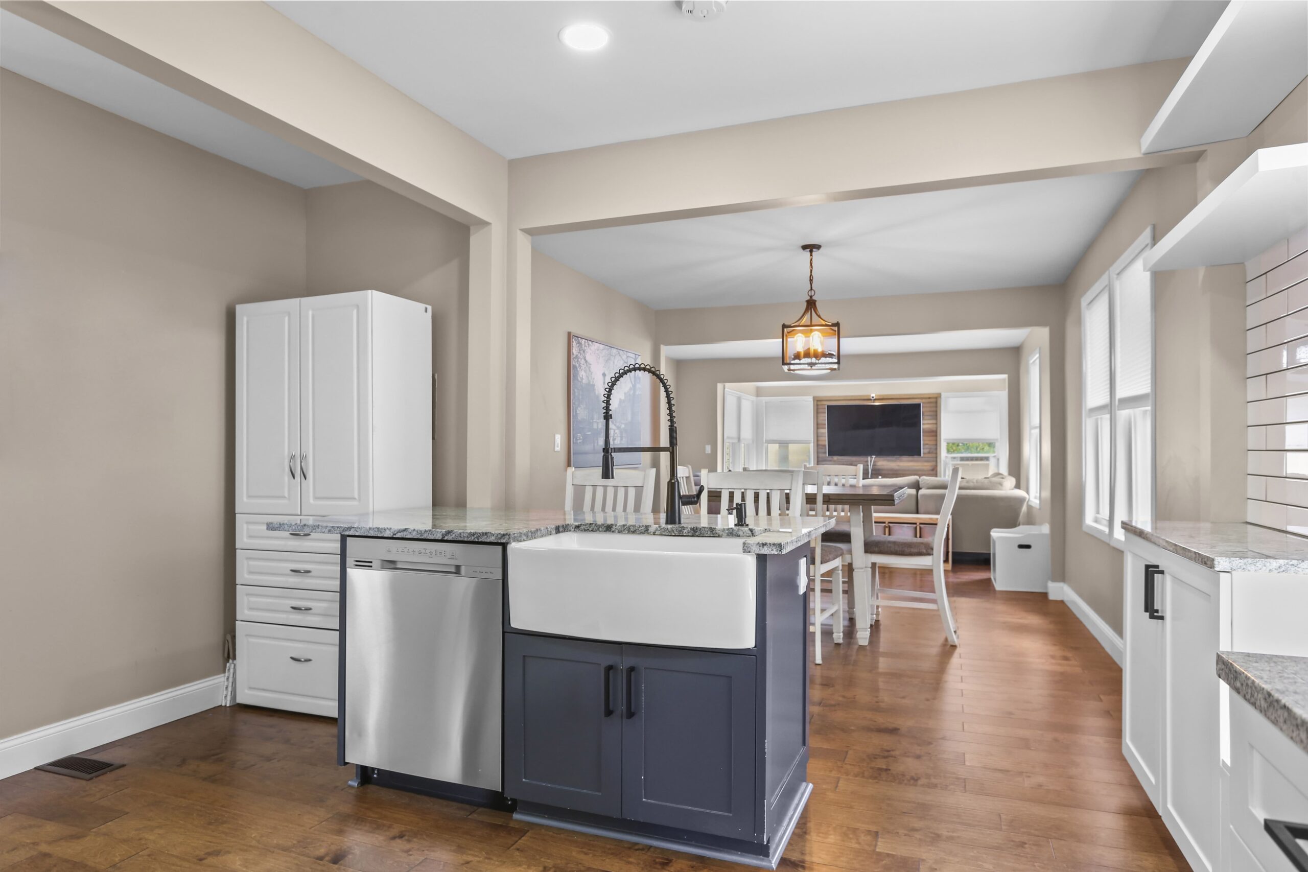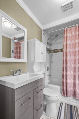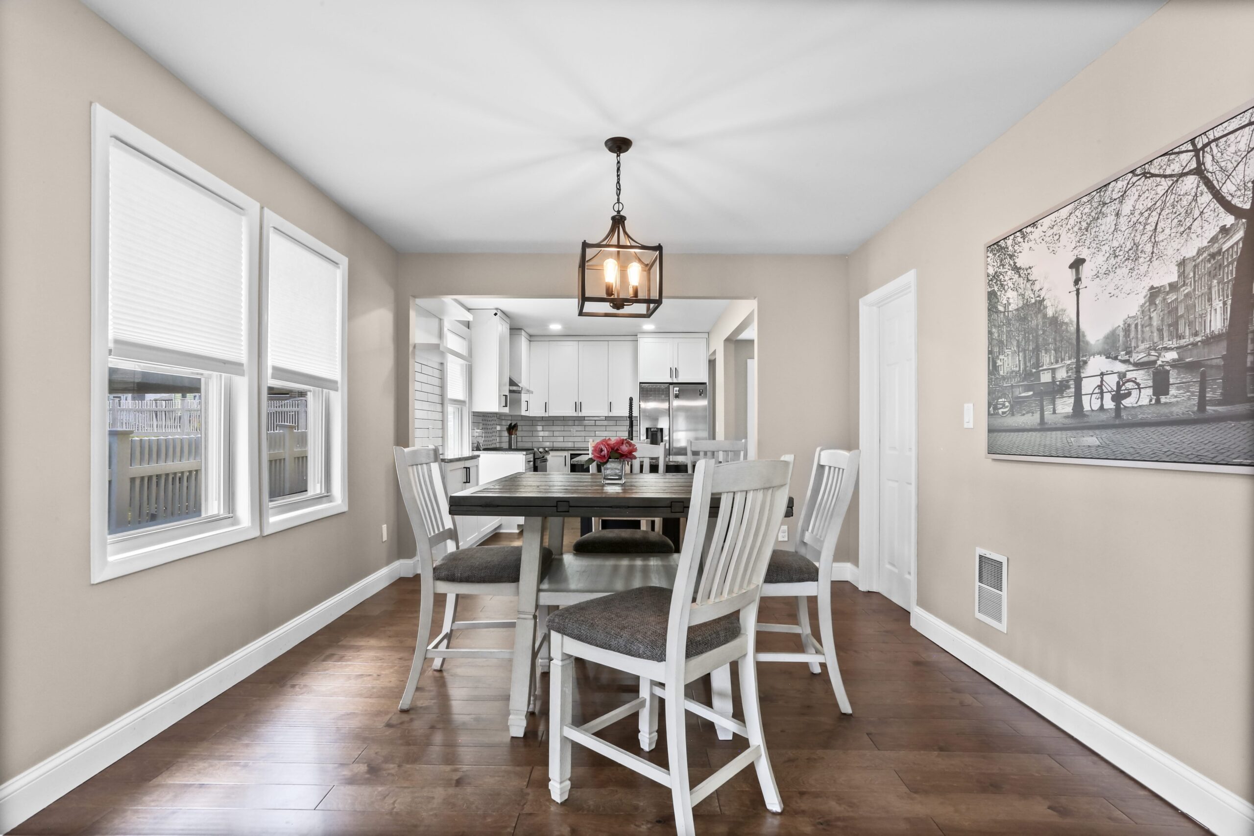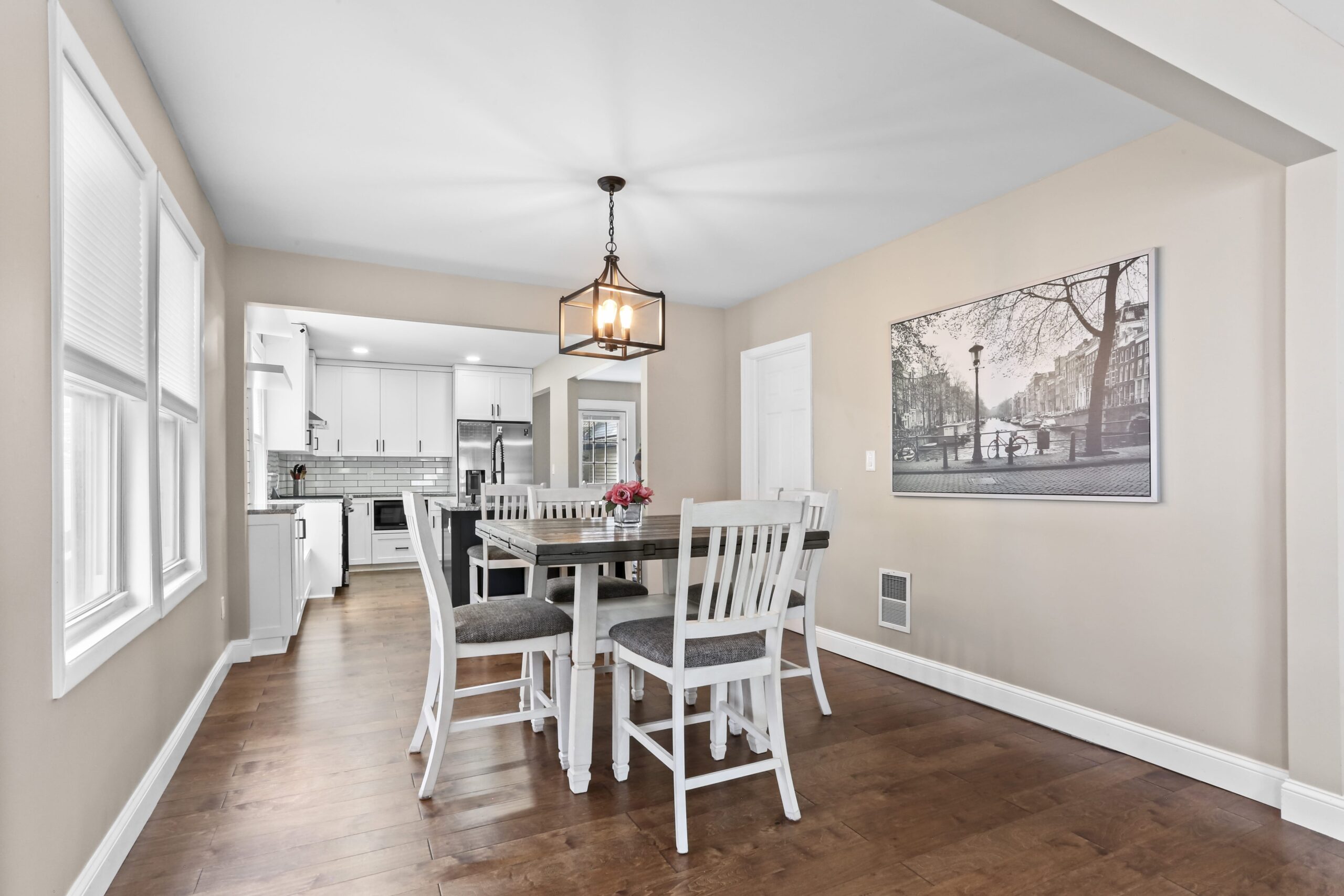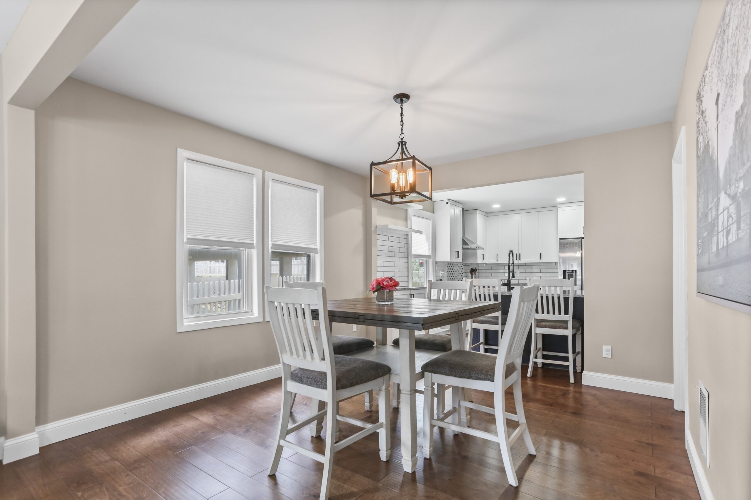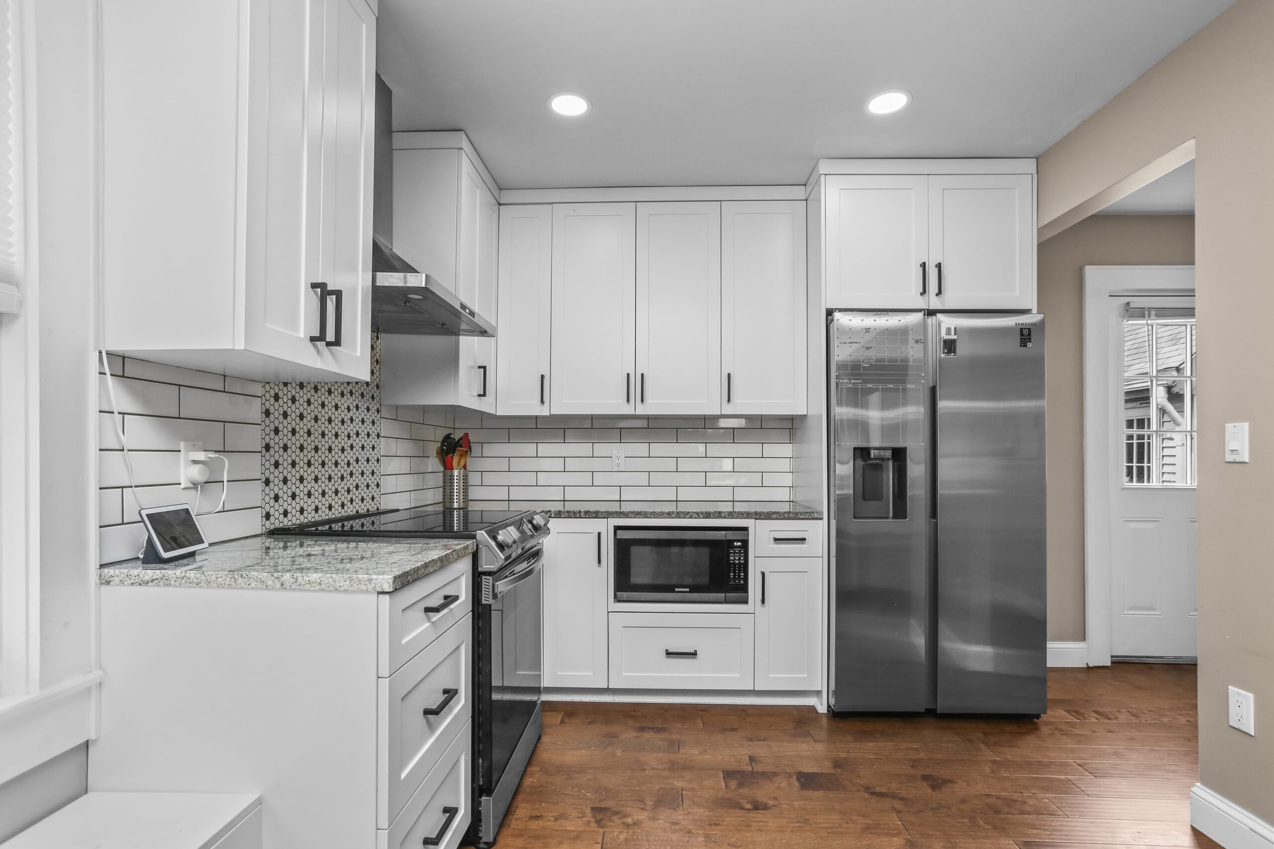 The gorgeous, renovated kitchen is sure to impress, featuring a farmhouse sink, peninsula with seating, pantry, stainless steel appliances, window seat, beautiful tile backsplash, and access to the backyard. A first-floor bedroom, full bathroom, and laundry area finish off the main level. The second floor features three bedrooms and two full bathrooms. Make your way to the large primary bedroom suite, complete with a full bathroom, amazing walk-in closet, and an office nook. The heated lower level is partially finished and is a great space for a playroom, family room, office, or gym.