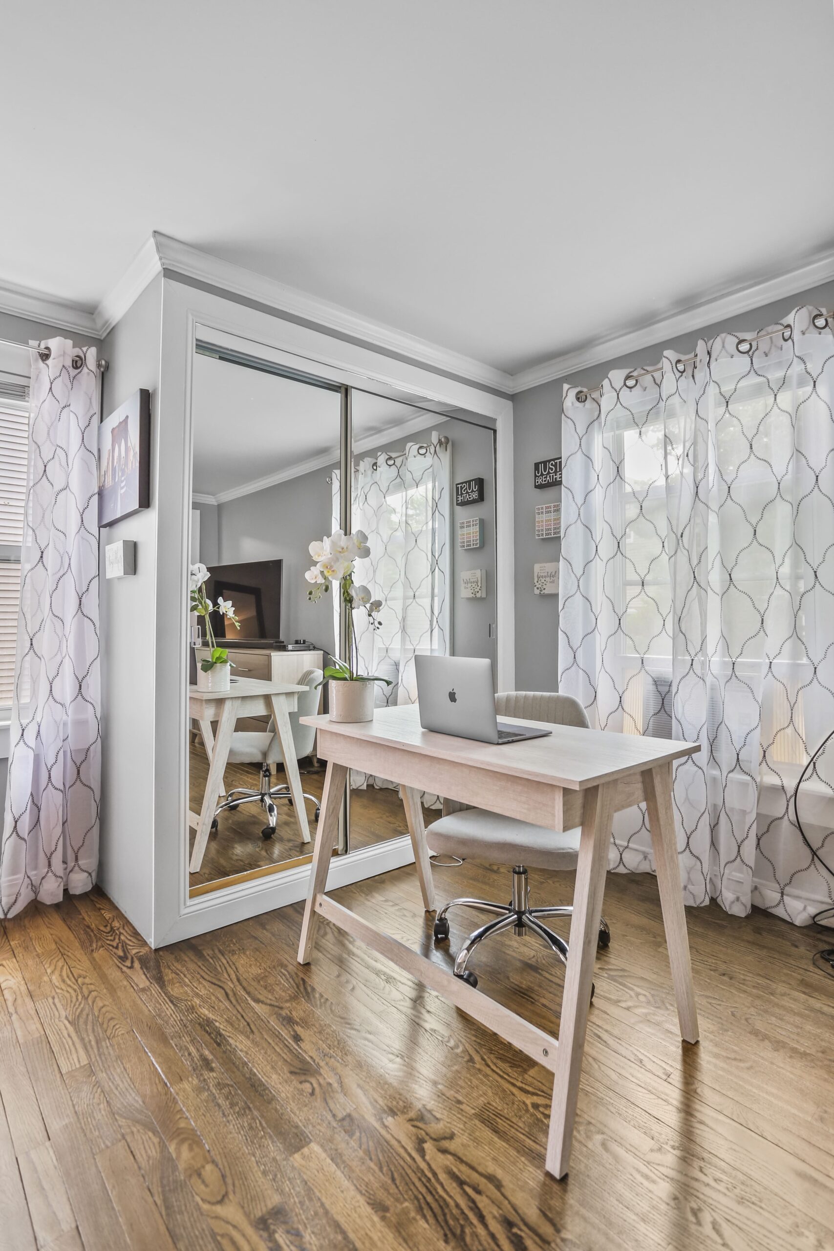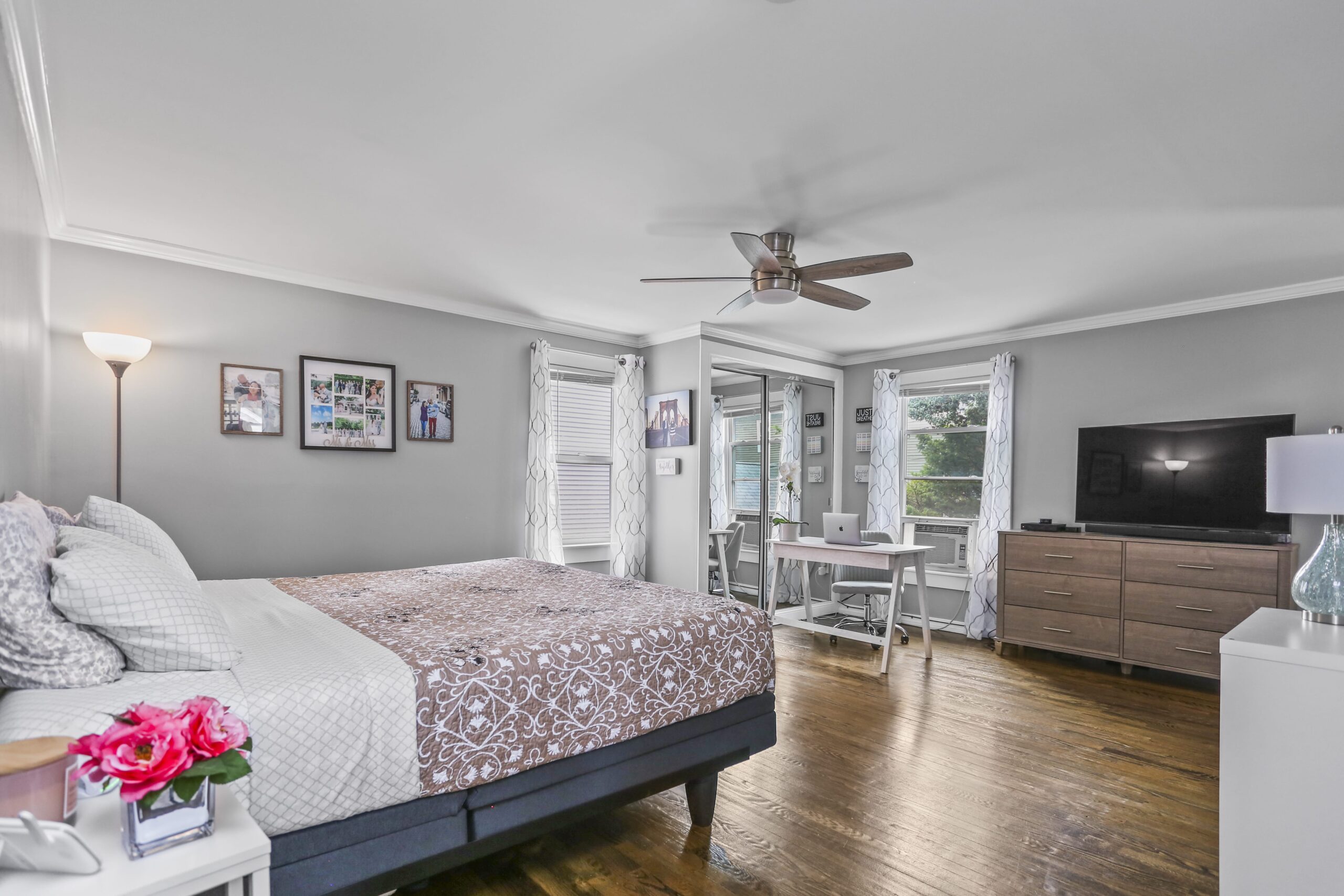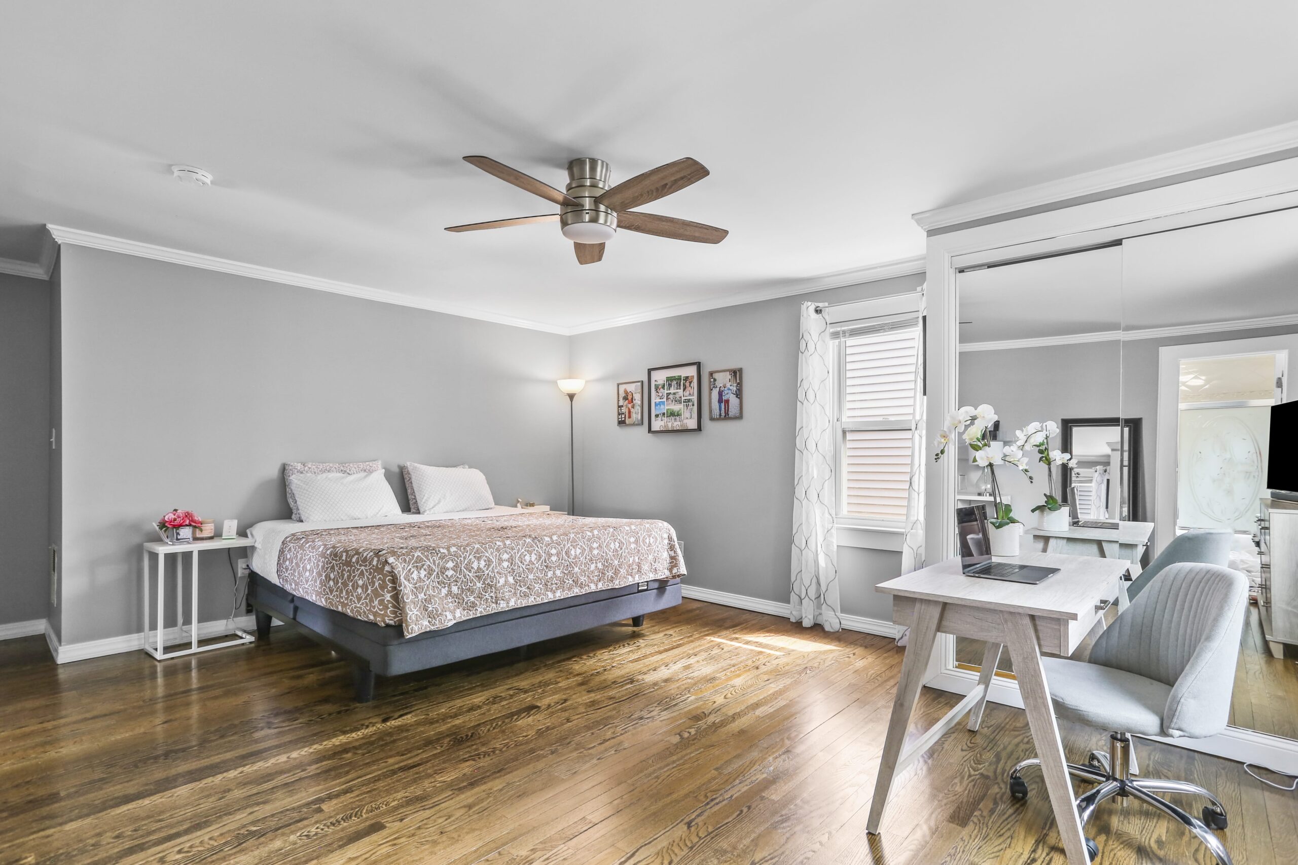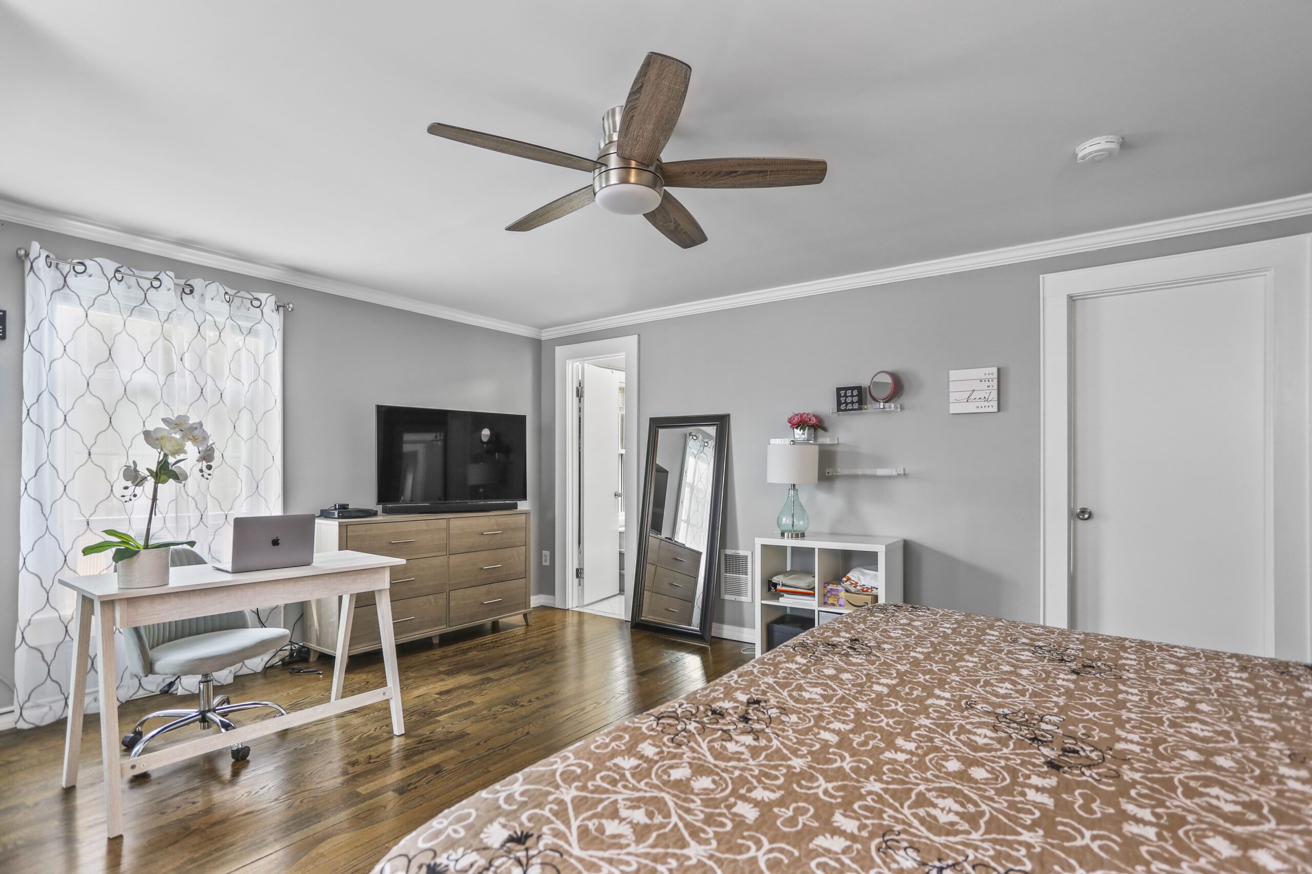 The gorgeous, renovated kitchen is sure to impress, featuring a farmhouse sink, peninsula with seating, pantry, stainless steel appliances, window seat, beautiful tile backsplash, and access to the backyard. A first-floor bedroom, full bathroom, and laundry area finish off the main level. The second floor features three bedrooms and two full bathrooms. Make your way to the large primary bedroom suite, complete with a full bathroom, amazing walk-in closet, and an office nook. The heated lower level is partially finished and is a great space for a playroom, family room, office, or gym.