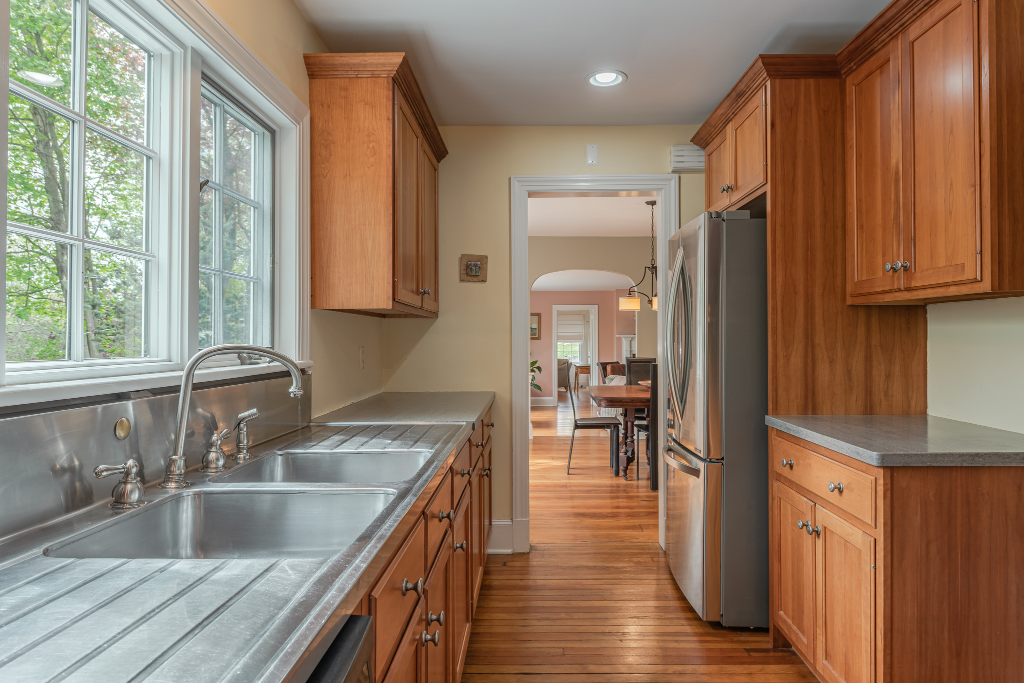 Welcome to 6 Hanover road! This 3 bedroom, 2 and half bathroom boutique style Cape, boasts every bit of New England charm. Suiting both classic and quality features throughout and perfectly situated in Newtown’s desirable “Borough District.” Upon entry one immediately notices the true character this home offers with its updated chef's kitchen with cement counters, stainless steel appliances, and ample storage in the solid wood cabinets. Flowing into the living room with wood pellet fireplace and entry to the additional vaulted ceiling bonus room above garage. A front office space with built in shelving is perfect for todays home office needs. The elegant dining room with direct access to the patio and yard creates a great space to entertain. Making your way to the large family room with wood burning fireplace and wide plank hardwood floor sets the tone for any relaxing nights end. A spacious bedroom with attached full bathroom finish off the main floor. Upstairs we find the primary bedroom with plenty of storage in its walk-in closet and shares the spa like full bathroom with the other oversized bedroom on this upper level. A couple steps away from Main street living and walking distance to town center restaurants and shops, this home is not one to miss!