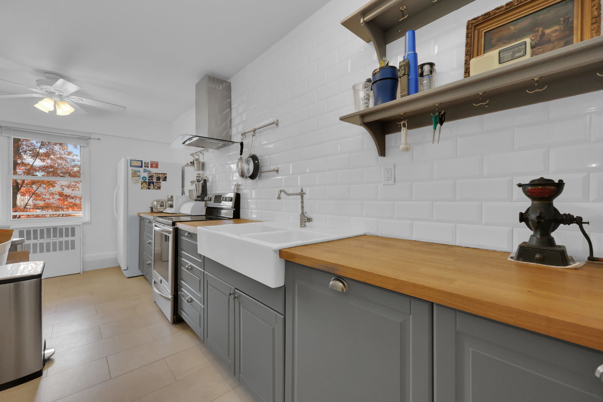 Welcome to 80 Cartright Street, ideally located right on the Fairfield/Bridgeport line! This spacious 1 bedroom, 1 bathroom condo offers nearly 1,000 square feet of updated living space with beautiful views from a private balcony. The remodeled kitchen features butcher block countertops, new stainless steel appliances, a white subway tile backsplash, and space for a dining table. The oversized primary bedroom offers hardwood floors and a large closet. The stylish bathroom includes an oversized stall shower with floor-to-ceiling tile and a sleek glass door.